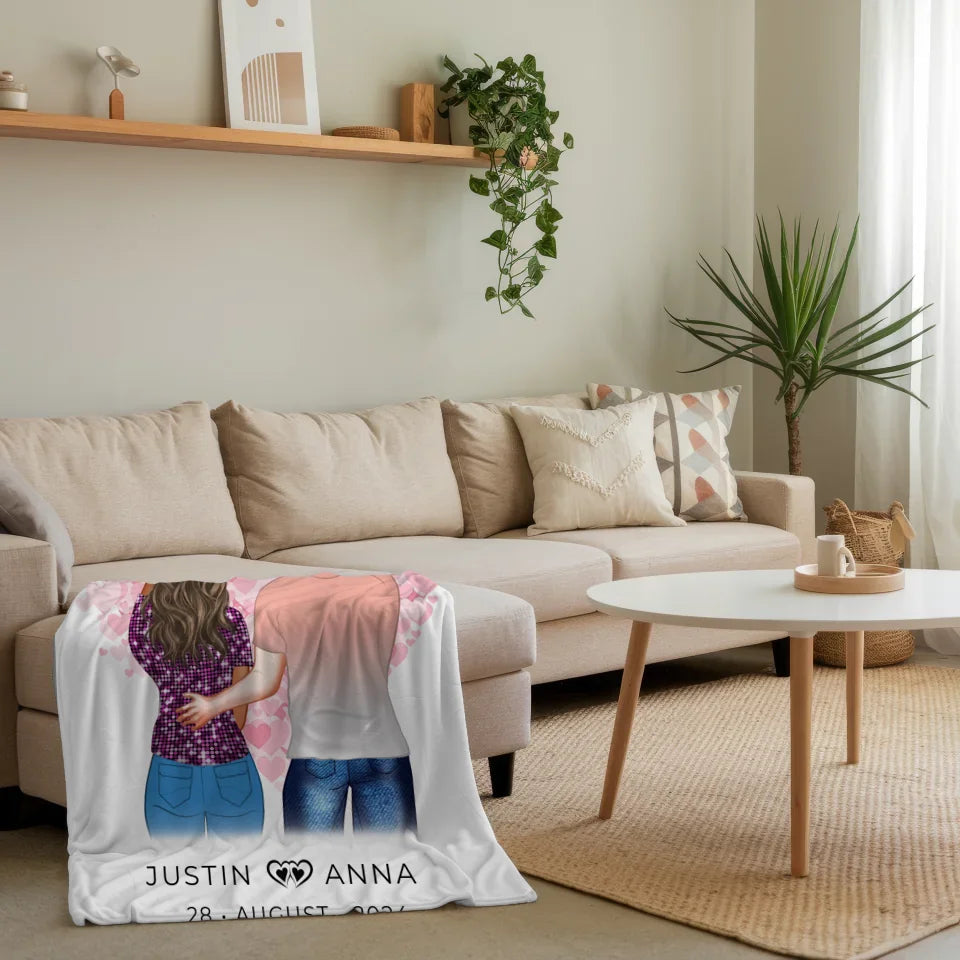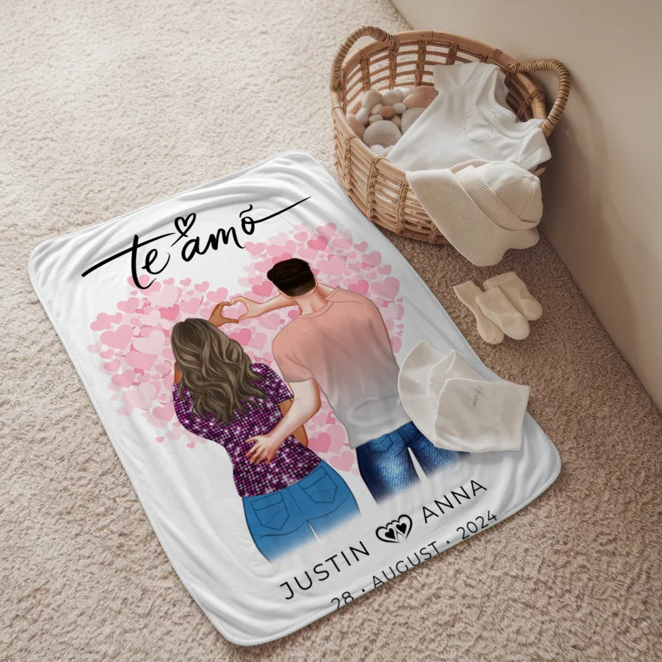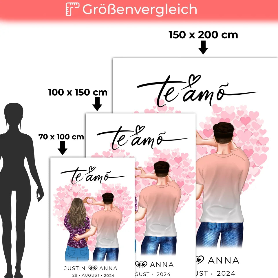 Personalisierte Decke Te Amo für Paare mit Namen und Figuren