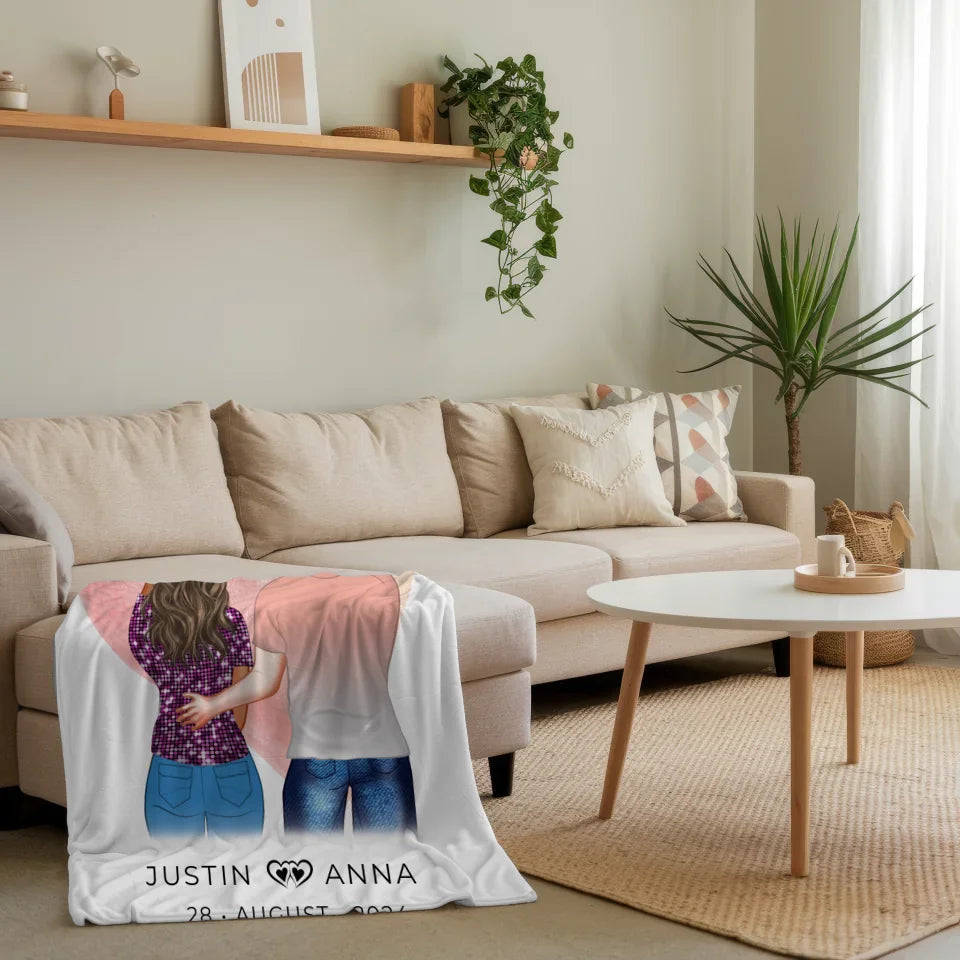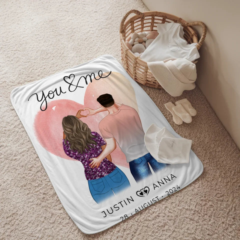 Personalisierte Decke You & Me für Paare mit Figuren und Namen