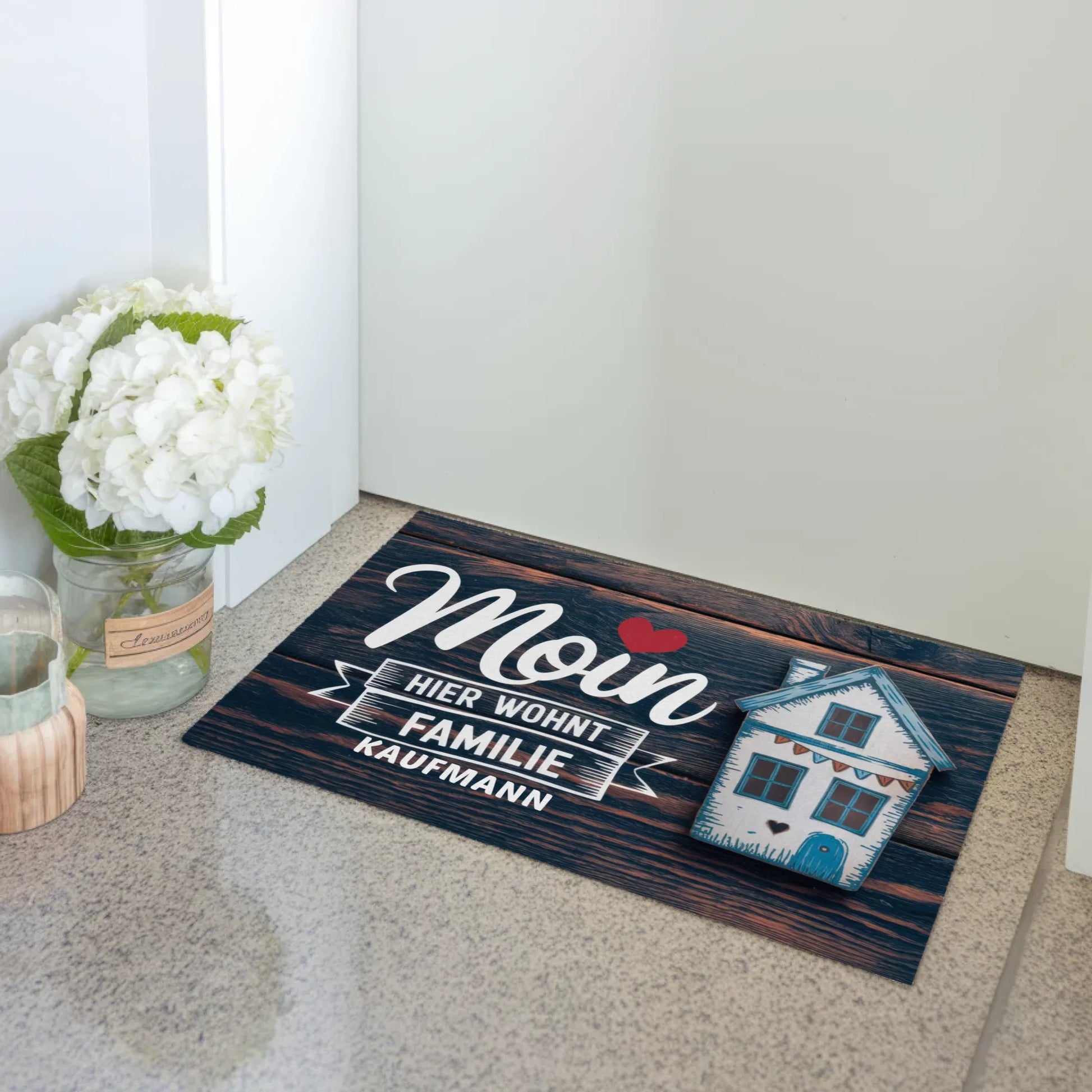 Personalisierte Familie Fußmatte Moin für Zuhause & Eingangsbereich