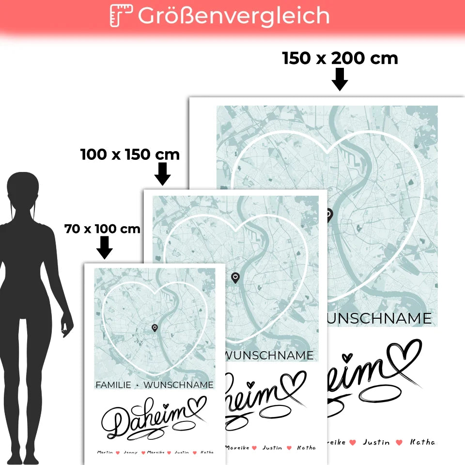Vertraue auf die Qualität und Kreativität unserer Produkte und gestalte deine ganz persönliche Stadtkarte in Herzform. Ein einzigartiges Design, das Spaß macht und Freude bringt. Lass dir diese Gelegenheit nicht entgehen und schenke Erinnerungen mit der personalisierten Familien Decke!