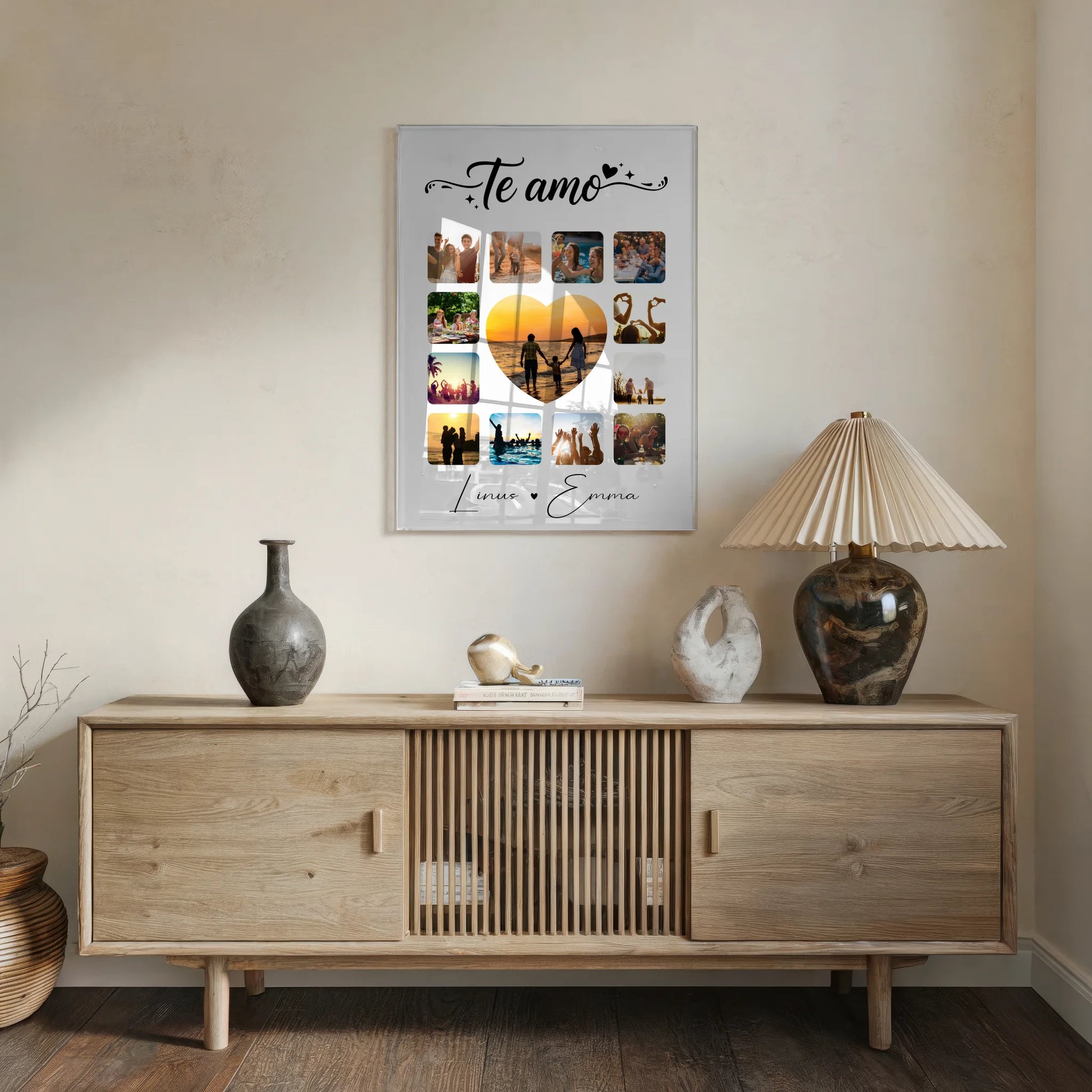 Personalisierte Foto Acrylglas für Paare mit 13 Fotos Te amo Liebe auf Spanisch Geschenk