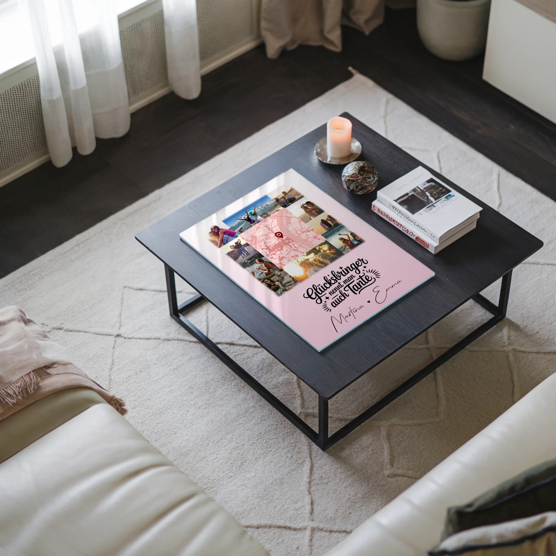 Überrasche deine Tante oder einen besonderen Menschen mit unserem einzigartigen Produkt: die Personalisierte Foto Acrylglas mit 10 Fotos und Glücksbringer Bruder in der Mitte. Dieses individuell gestaltete Acrylglas ist mehr als nur ein Dekorationsstück – es ist eine liebevolle Erinnerung, die Herzen berührt. Du kannst dieses besondere Geschenk ganz nach deinen Wünschen personalisieren, indem du bis zu 10 Fotos auswählst, einen eigenen Spruch oder Wunschtext hinzufügst, sowie Namen & eine Karte mit einem besonderen Ort integrierst. Das Design trägt den schönen Spruch: „Glücksbringer nennt man auch Bruder“, was es zu einem emotionalen Highlight macht. Besonders geeignet ist dieses Fotocollage für Tante, aber es ist auch perfekt für jeden Anlass, sei es Geburtstag, Jubiläum, Weihnachten oder einfach nur, um Danke zu sagen. Mit diesem personalisierten Geschenk zeigst du deine Wertschätzung auf eine einzigartige und persönliche Weise. Mach deine Geschenkidee unvergesslich und freue dich über ein hochwertiges Produkt, das Liebe und Erinnerungen vereint.