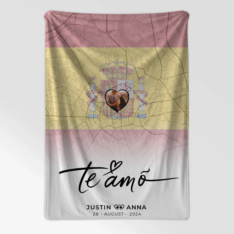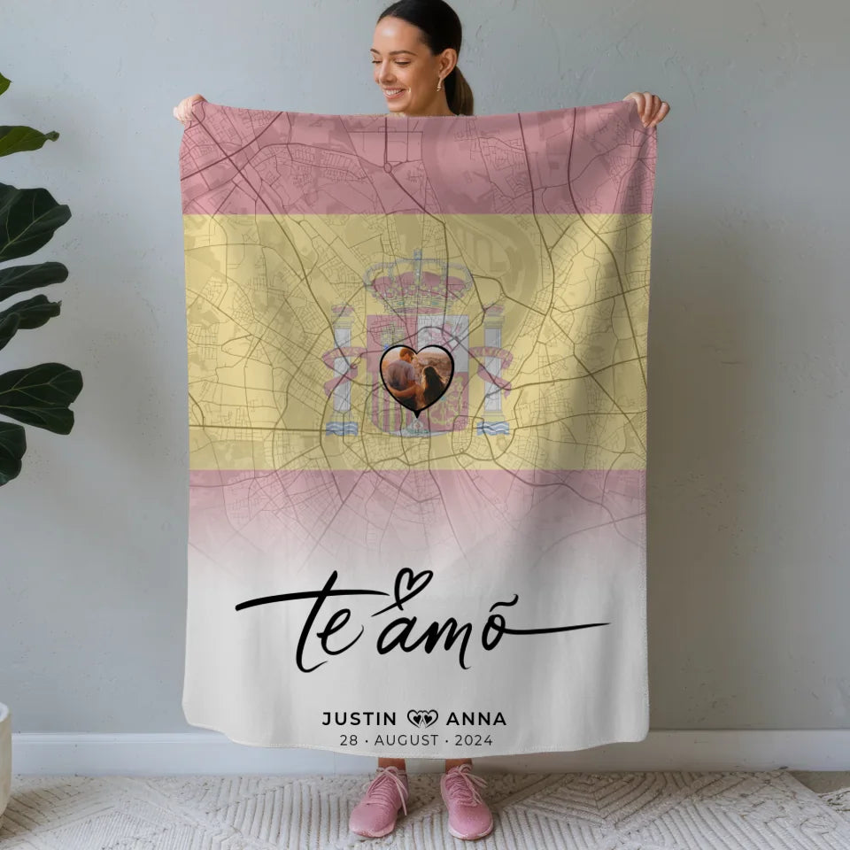 Personalisierte Foto Decke für Paare Stadtkarte Spanien Te Amo