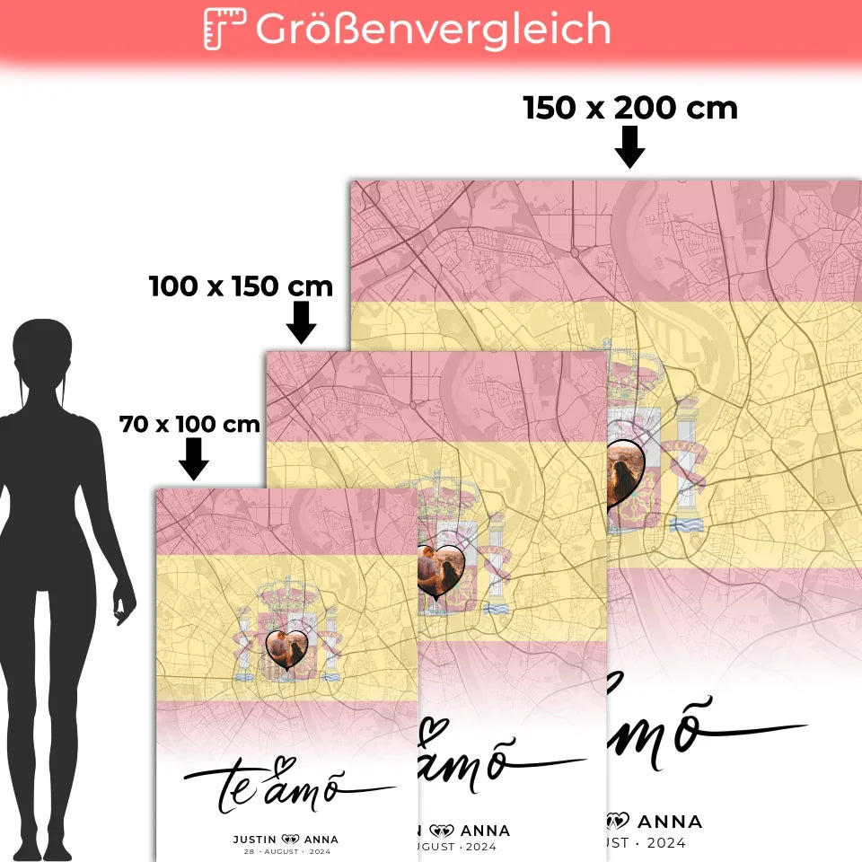 Entdecke die perfekte Möglichkeit, deine schönsten Erinnerungen in Form von Geschenken zu verewigen! Mit unserer personalisierten Foto Decke für Paare Stadtkarte Spanien Te Amo schaffst du ein einzigartiges Unikat, das garantiert für Freude sorgt. Diese kuschelige Decke ist nicht nur ein praktisches Accessoire, sondern auch ein Ausdruck deiner Liebe und Verbundenheit.