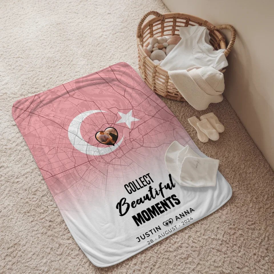 Personalisierte Foto Decke für Paare Stadtkarte Türkei Collect Beautiful Moments