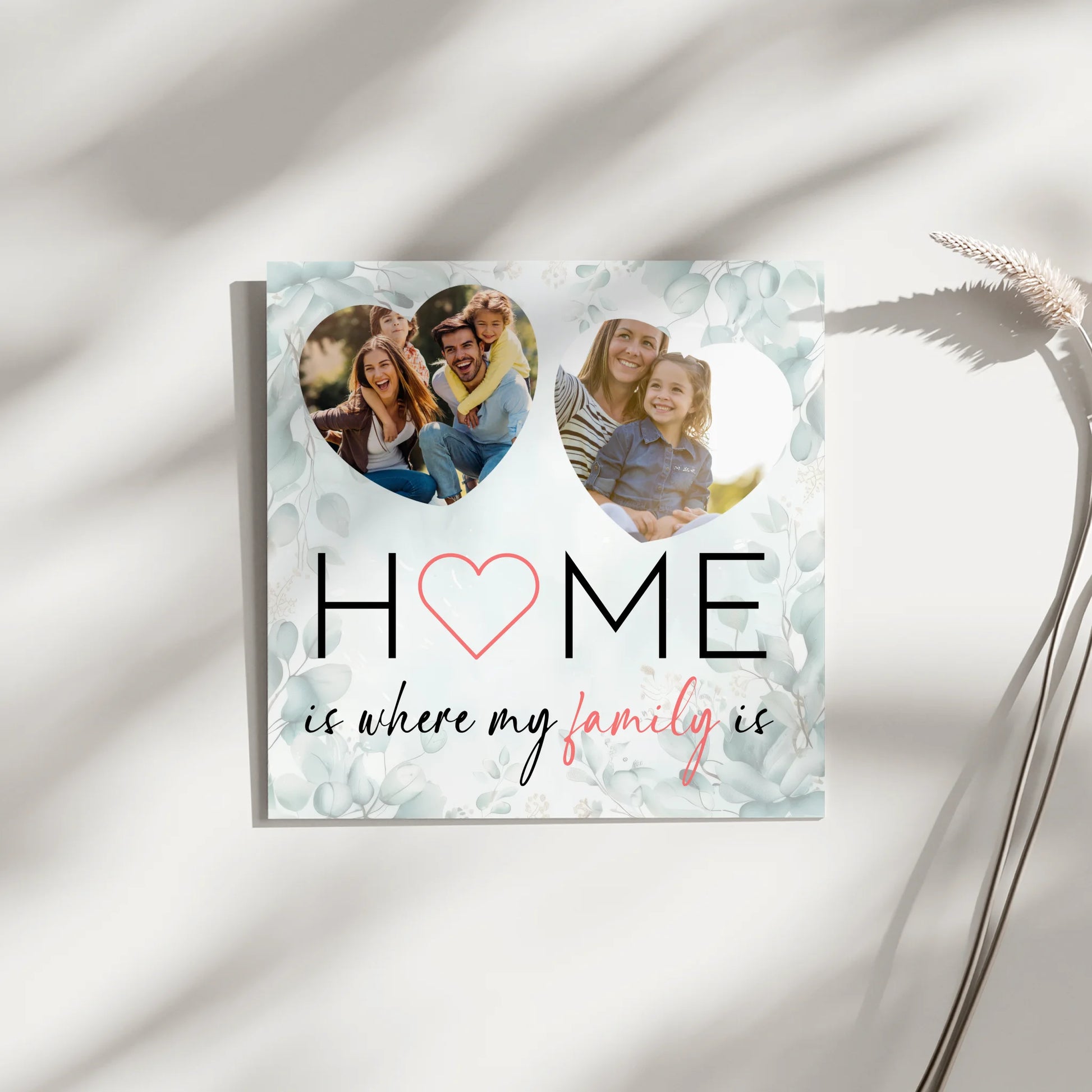 Unsere Personalisierte Foto Leinwand Familie mit 2 Fotos und Wunschtext