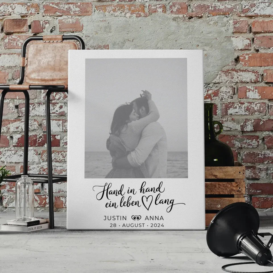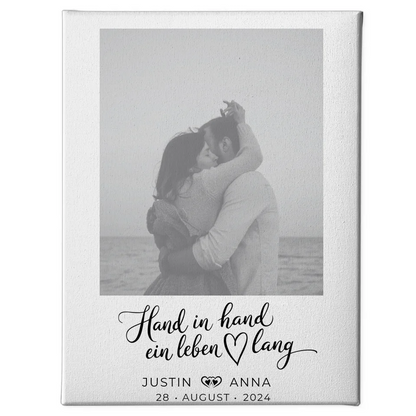 Personalisierte Foto Leinwand Paare mit Namen Hand In Hand Ein Leben Lang