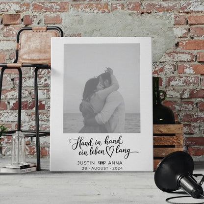 Bestelle jetzt deine 'Personalisierte Foto Leinwand Paare mit Namen Hand In Hand Ein Leben Lang' und genieße die Freude am Schenken mit einem individuell gestalteten Geschenk, das für Jahre währt!