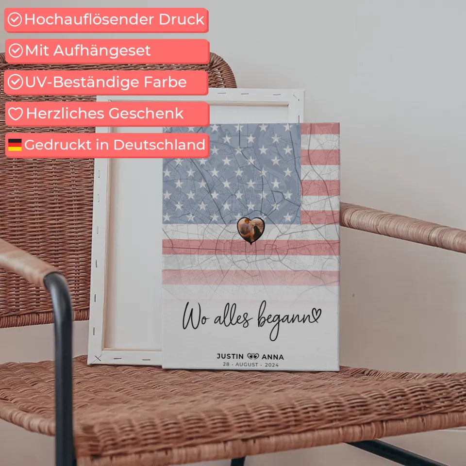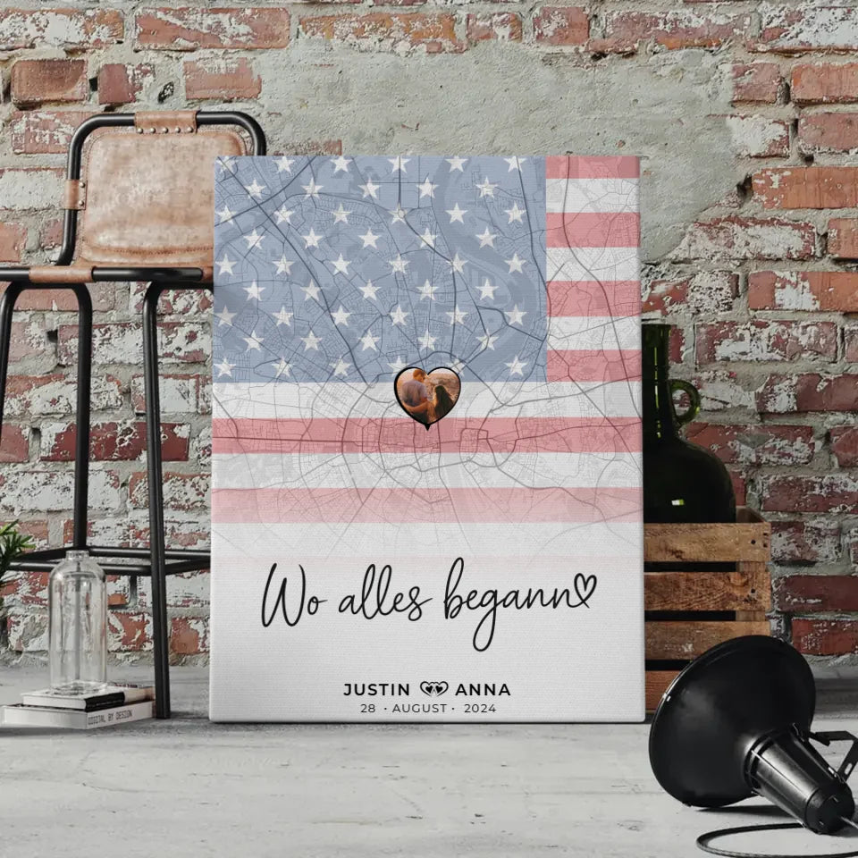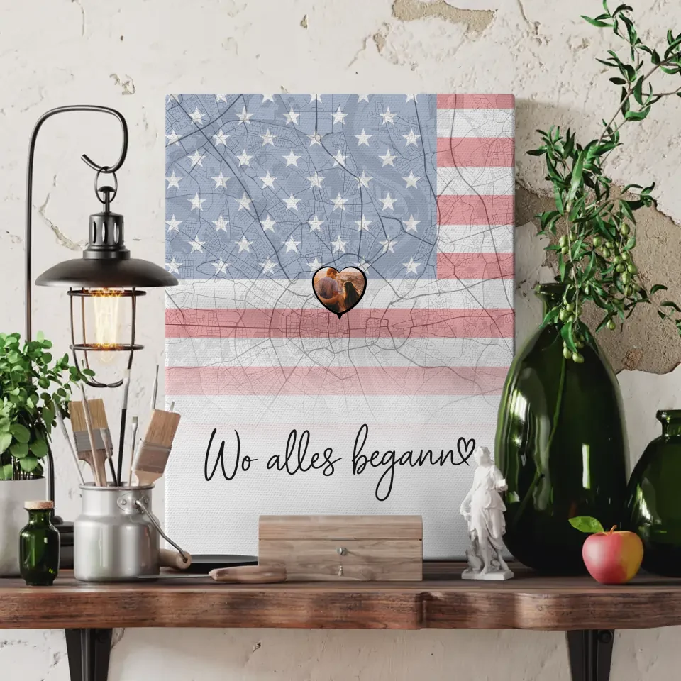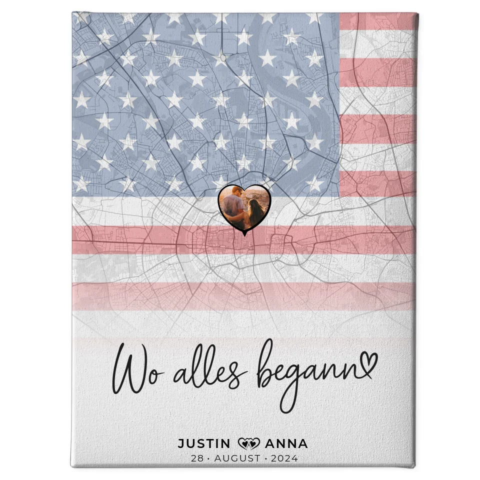 Entdecke die Personalisierte Foto Leinwand Paare Stadtkarte USA Wo Alles Begann
