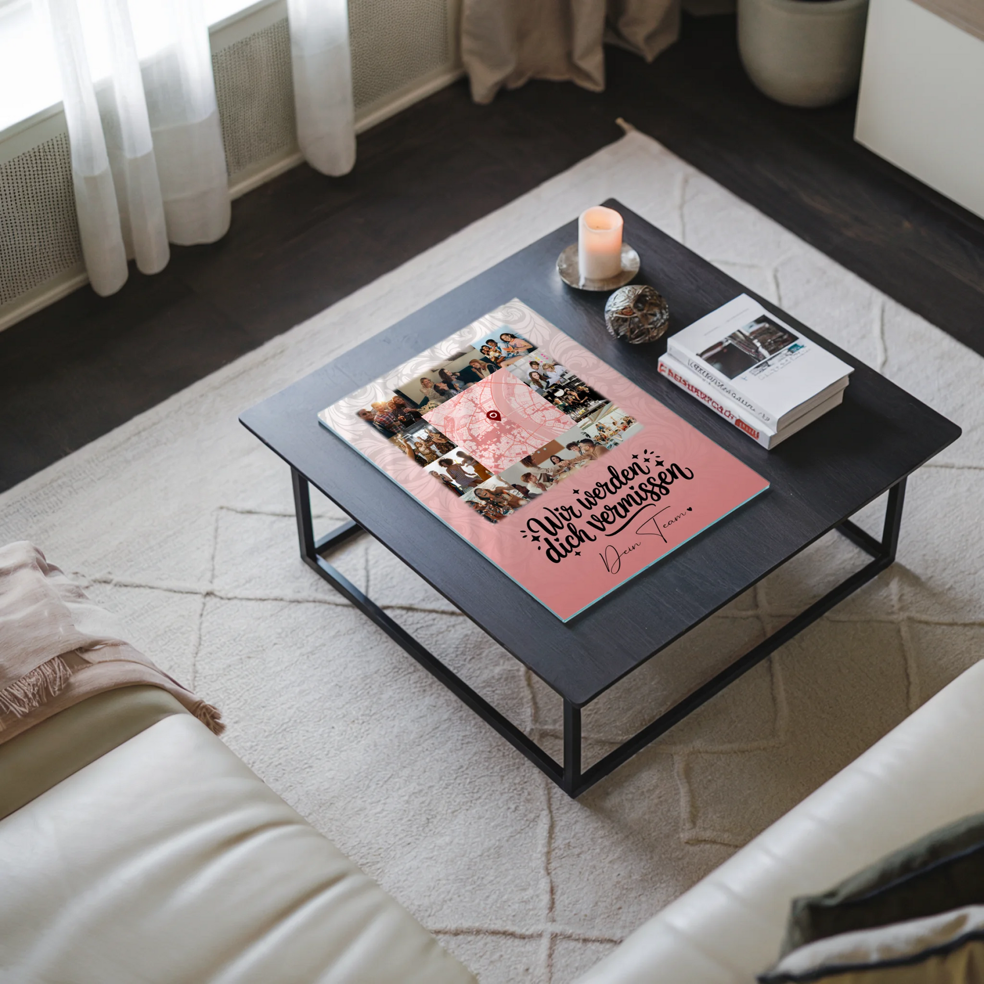 Überrasche deine Kollegin mit einem einzigartigen und persönlichen Geschenk: die Personalisierte Foto Mit Acrylglas 10 Fotos und Karte in der Mitte Glück ist Zeit mit dir. Dieses besondere Präsent vereint deine schönsten Erinnerungen in einem stilvollen Acrylglas-Design und ist perfekt für den Anlass der Verabschiedung. Du kannst das Geschenk individuell gestalten, indem du bis zu 10 Fotos auswählst, einen eigenen Spruch oder Wunschtext hinzufügst und eine Karte mit einem besonderen Ort sowie Namen personalisierst. Das Design trägt den inspirierenden Spruch: „Glück ist, Zeit mit dir zu verbringen“, der die Wertschätzung und die gemeinsamen Momente perfekt widerspiegelt. Dieses personalisierte Geschenk ist ideal, um deiner Kollegin zu zeigen, wie sehr du die gemeinsame Zeit schätzt und ihr eine bleibende Erinnerung zu schenken. Es eignet sich hervorragend für Verabschiedungen und wird garantiert für Freude sorgen. Mach dein Geschenk einzigartig und zeige deine Wertschätzung mit der Personalisierte Foto Mit Acrylglas 10 Fotos und Karte in der Mitte Glück ist Zeit mit dir.