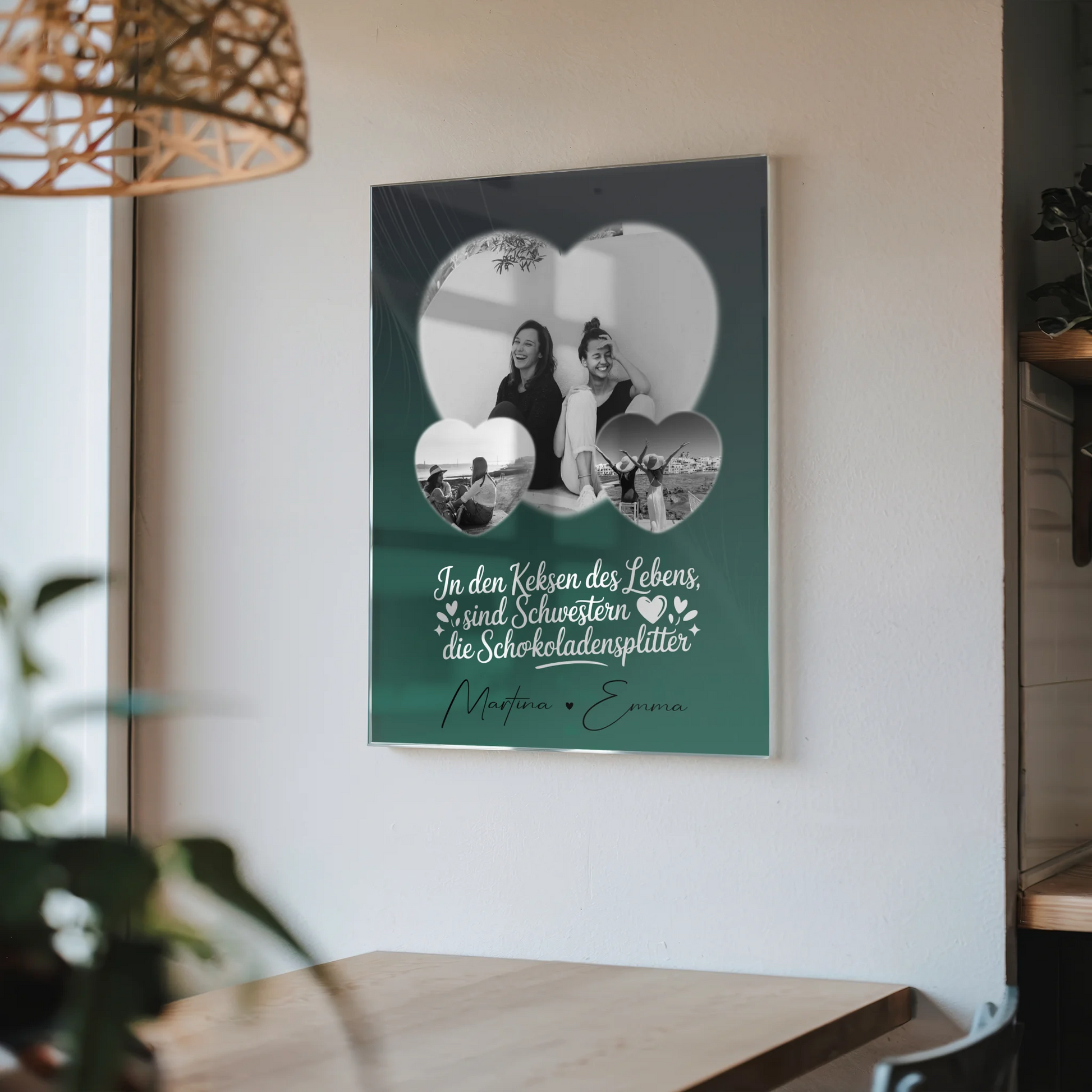 Überrasche deine Schwester zum Geburtstag mit einem einzigartigen und liebevoll gestalteten Geschenk – der Personalisierte Foto Mit Acrylglas mit 3 Herz Fotos für besondere Geschenke. Dieses besondere Präsent vereint deine schönsten Erinnerungen in einem stilvollen Acrylglas, das durch seine klare Optik und die liebevolle Gestaltung begeistert. Du kannst das Acrylglas ganz individuell anpassen: Wähle deine drei Lieblingsfotos, füge einen persönlichen Spruch oder Wunschtext hinzu und ergänze das Ganze mit den Namen deiner Schwester. So entsteht ein einzigartiges Geschenk, das ihre Herzen garantiert berührt. Perfekt für den Geburtstag deiner Schwester, um ihr zu zeigen, wie viel sie dir bedeutet. Das personalisierte Acrylglas ist nicht nur ein Blickfang, sondern auch ein emotionales Andenken, das sie immer an eure besonderen Momente erinnert. Mach diesen Tag unvergesslich mit einem Geschenk, das so einzigartig ist wie eure Beziehung.