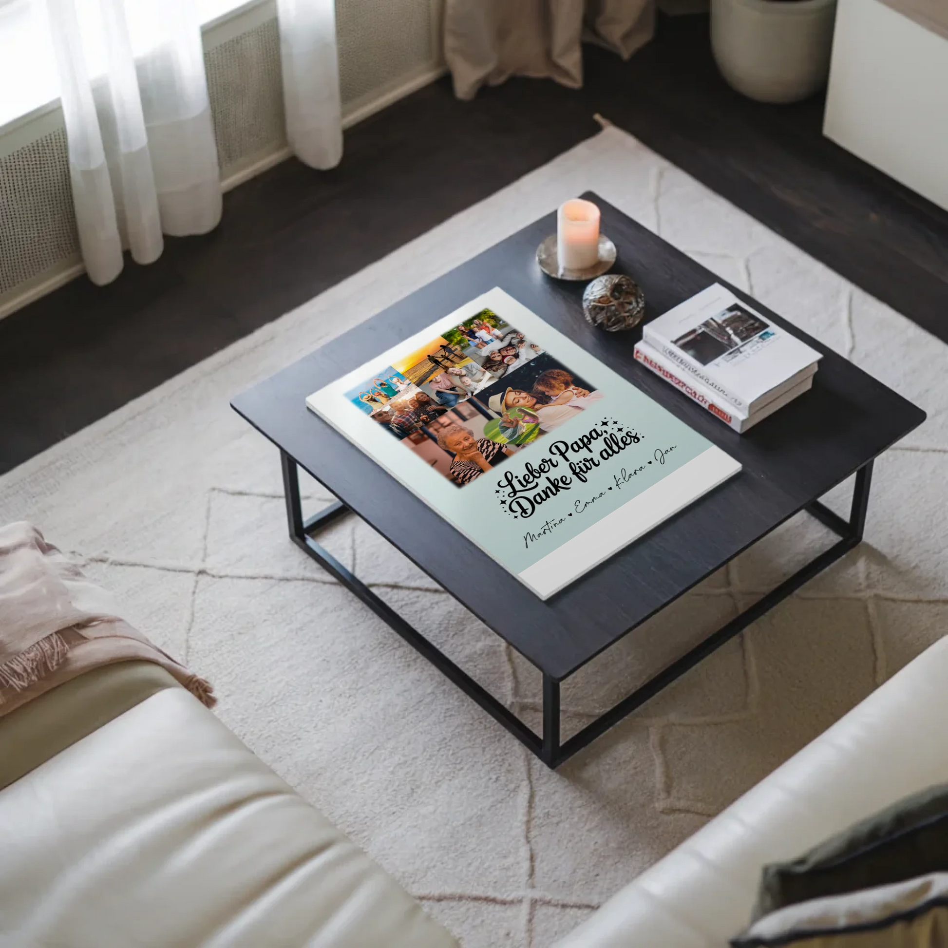 Personalisierte Fotoboard Magnet Poster mit 8 Fotos und Herz Motiv Lieber Papa Danke für alles