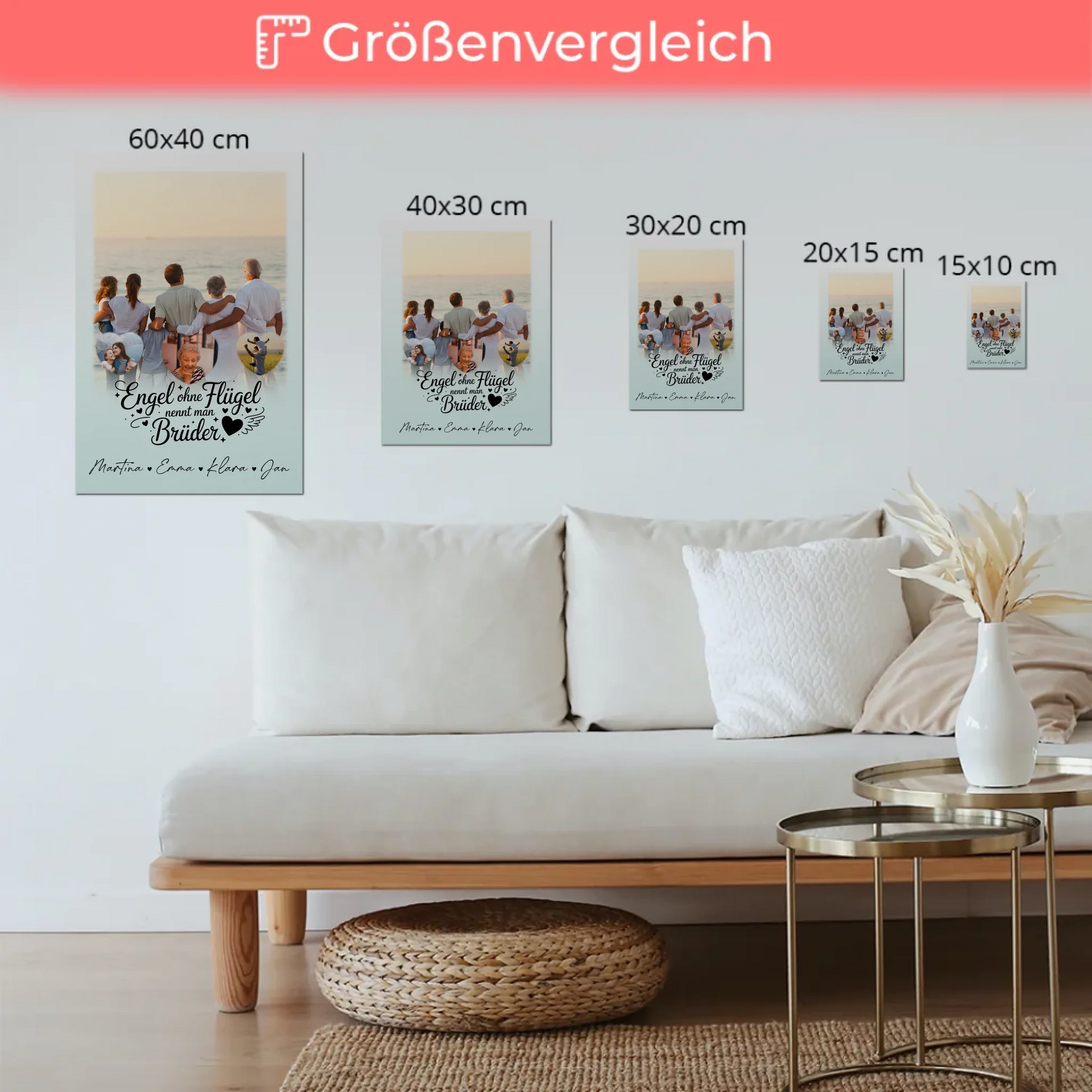 Personalisierte Fotoboard Magnet Wandbild mit 1 Foto und 3 Herzfotos Bruder ist ein Engel