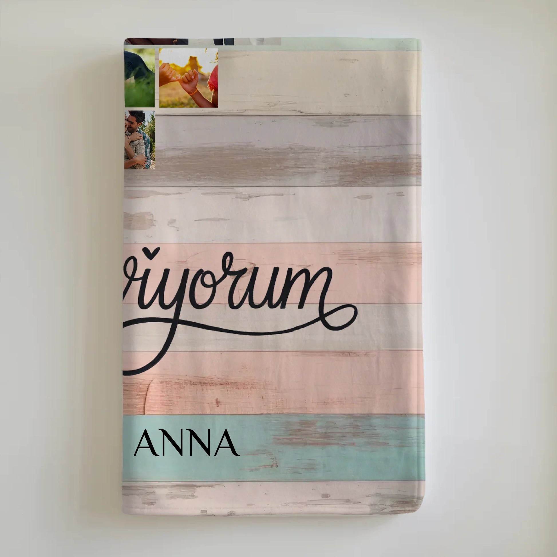 Der liebevolle Spruch 'Seni Seviyorum' macht diese Decke zu einem unvergesslichen Ausdruck deiner Zuneigung. Mit der Option Foto Auf Decke Personalisiert, kannst du deine schönsten Erinnerungen in eine wunderschöne Fotocollage verwandeln. Zeige deinem Partner, wie viel er dir bedeutet und schenke ihm etwas ganz Persönliches.
