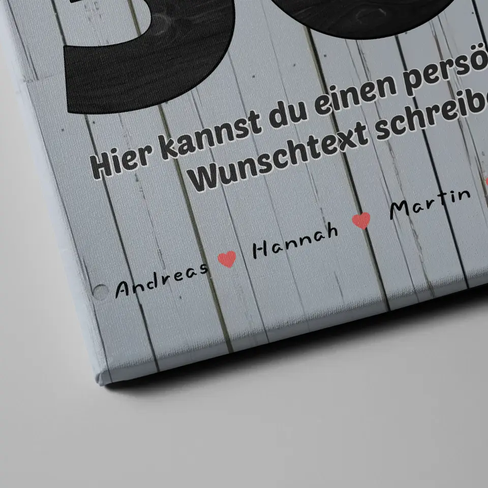 Du kannst bei diesem schönen Design 15 Namen, 14 Fotos, Hintergrundbild & Wunschtext ganz individuell personalisieren.