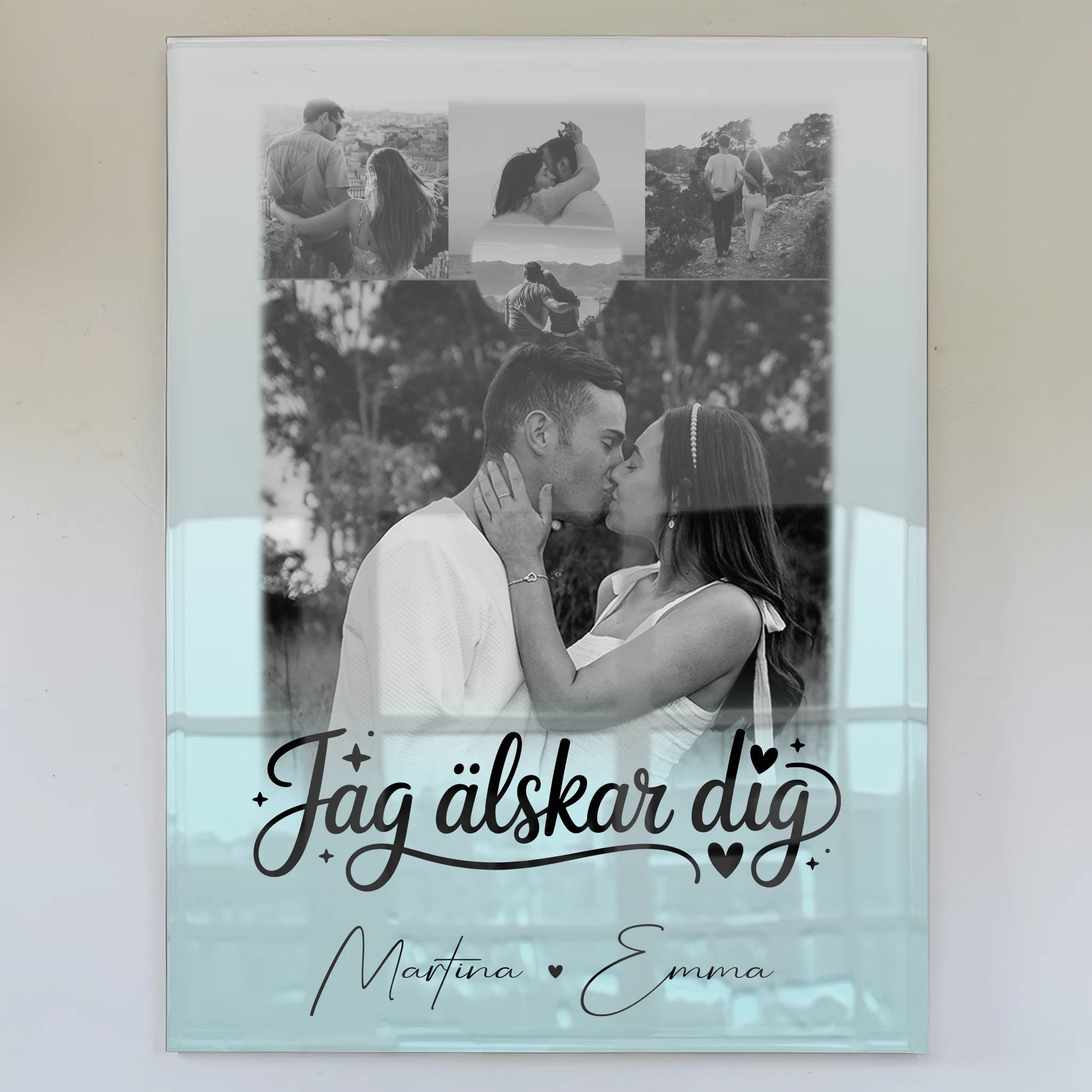 Personalisierte Fotogeschenke mit Acrylglas 4 Fotos und Herz Jag älskar dig – das perfekte Valentinstagsgeschenk für Paare