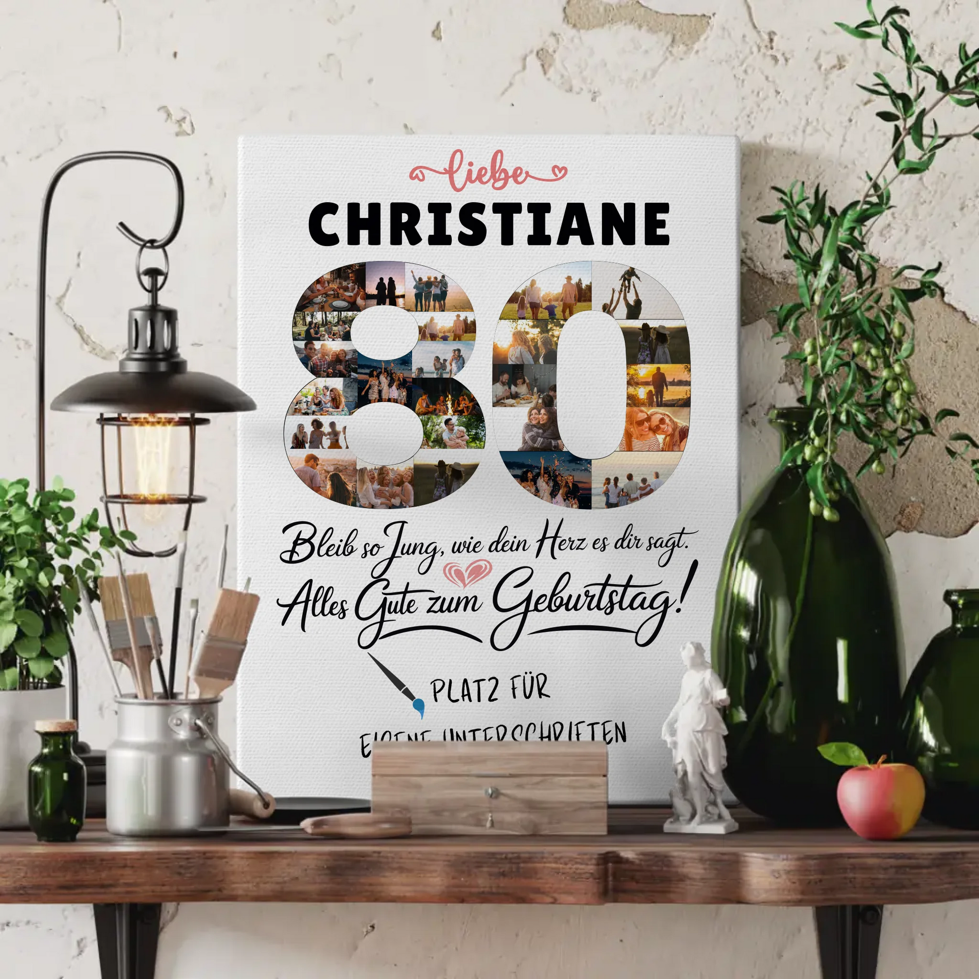 Personalisierte Fotoleinwand 80 Geburtstag mit Fotos und Name