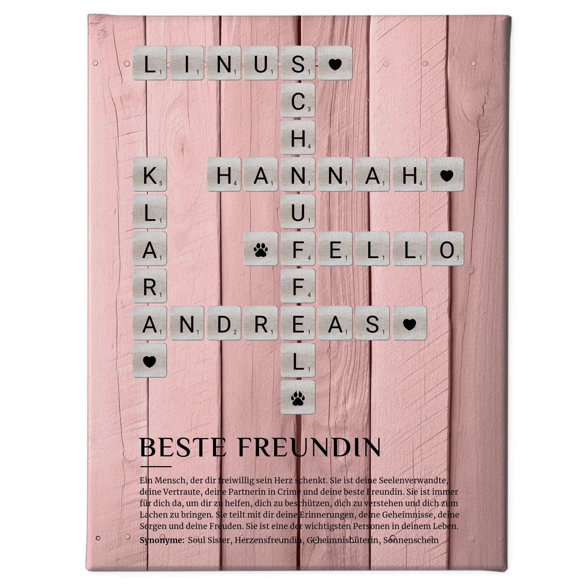 Personalisierte Fotoleinwand Beste Freundin Kreuzworträtsel - Das perfekte Geschenk