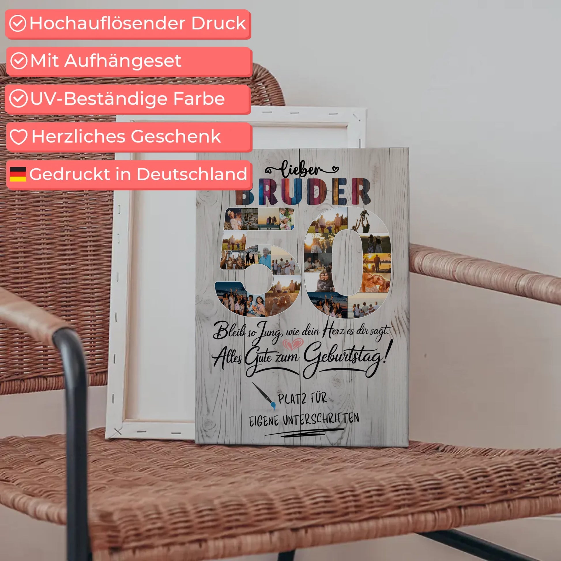 Personalisierte Fotoleinwand Bruder zum 50. Geburtstag mit Unterschriften