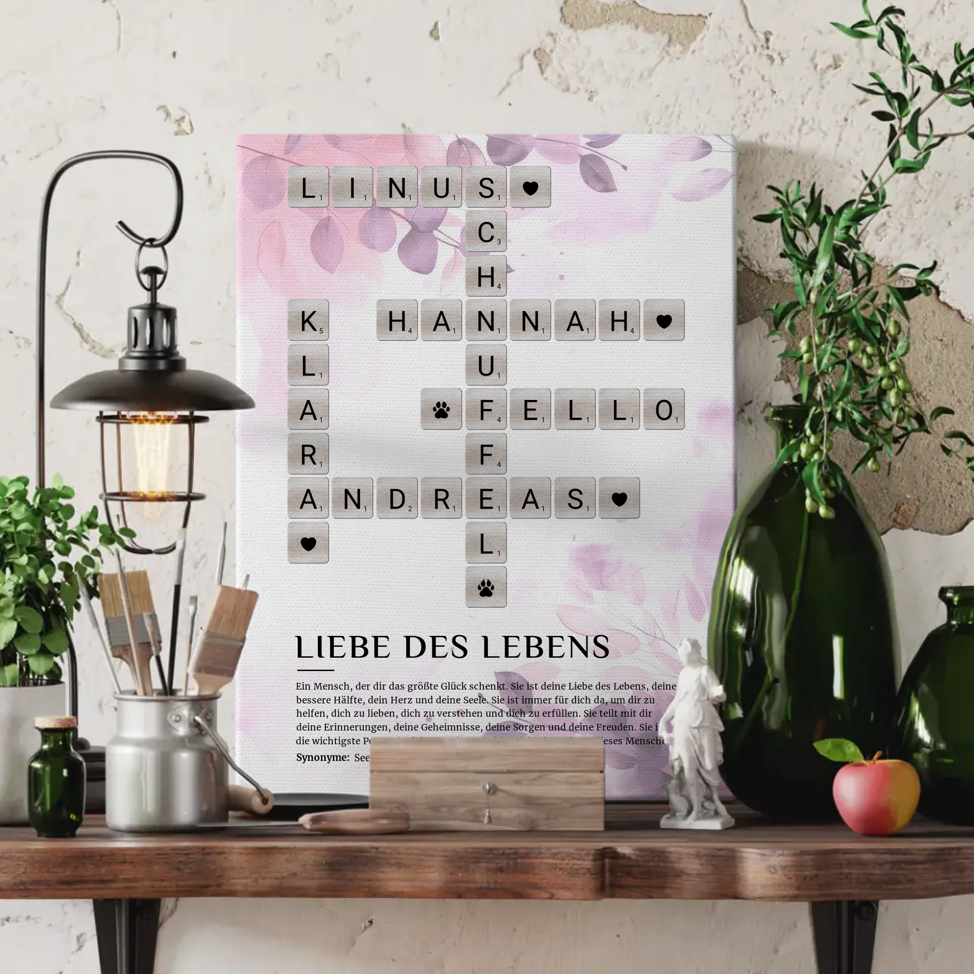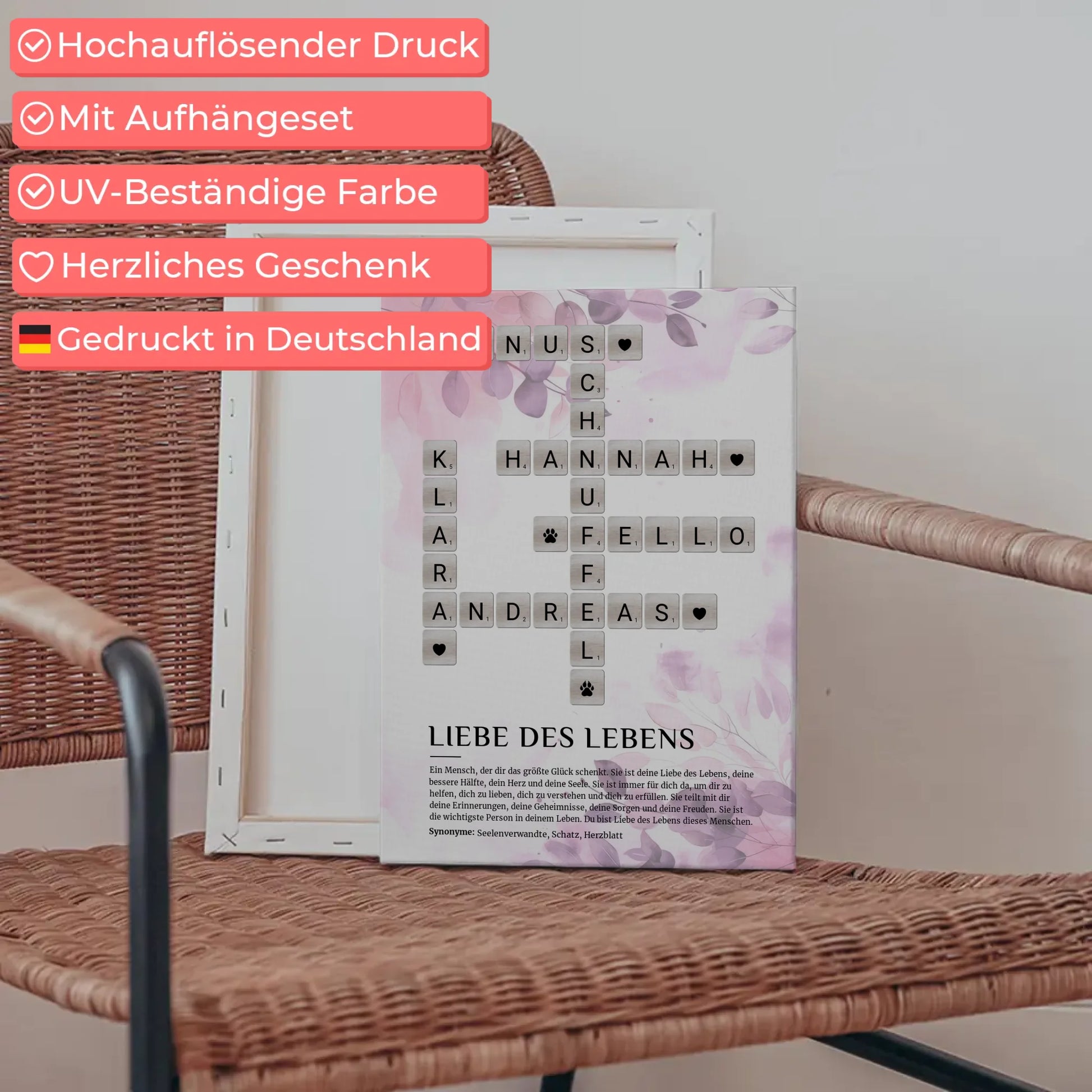 Personalisierte Fotoleinwand Definition Liebe des Lebens Kreuzworträtsel