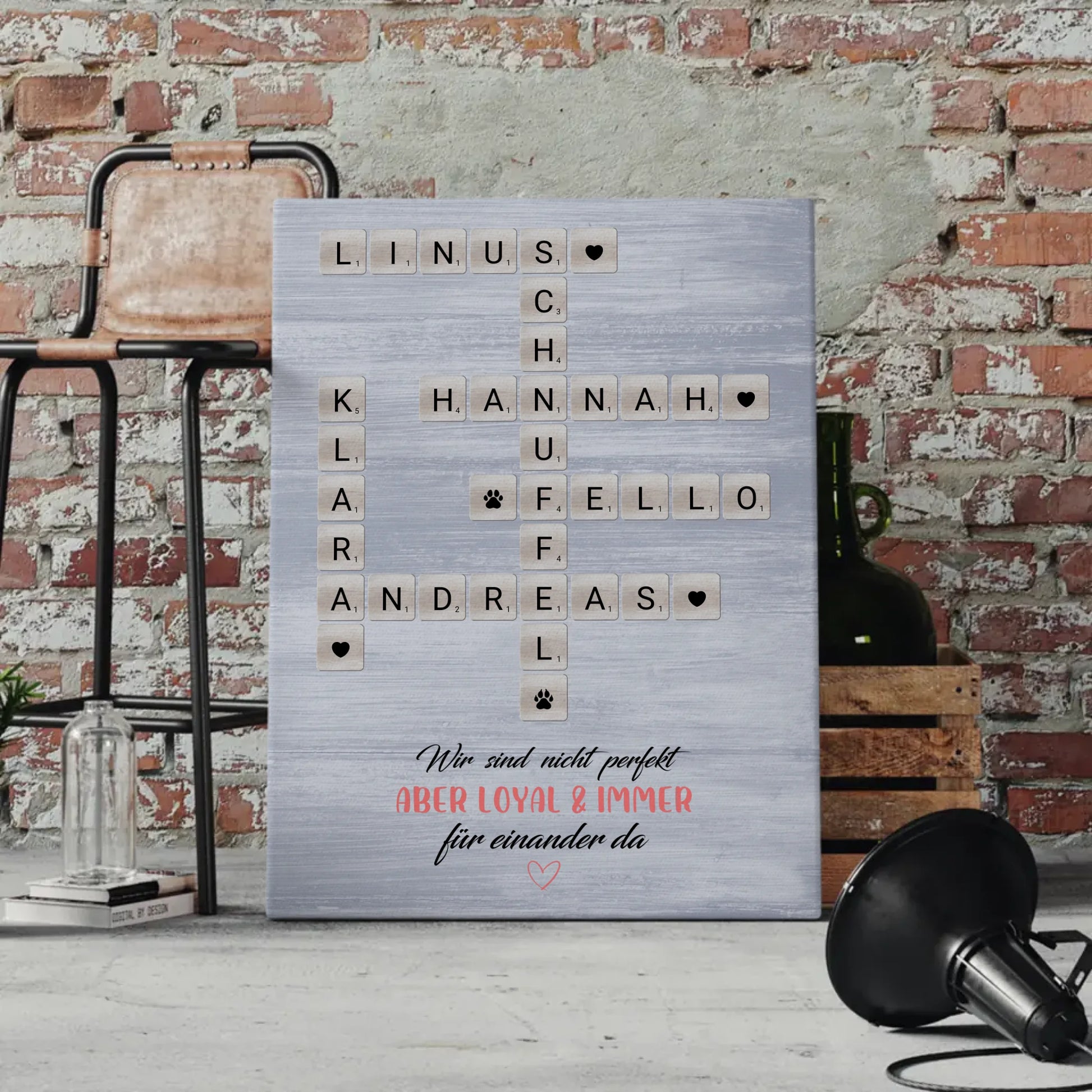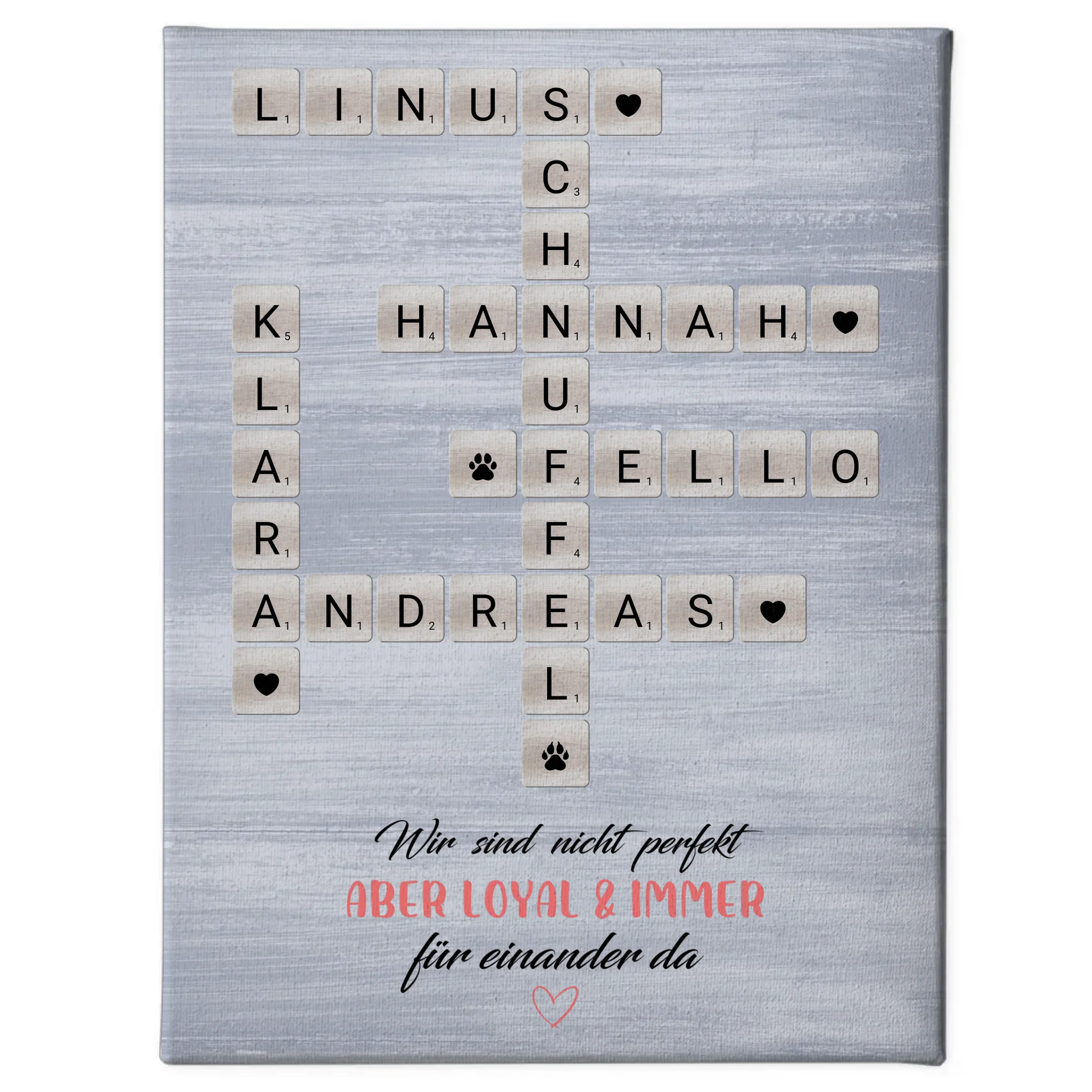 Personalisierte Fotoleinwand Familie Kreuzworträtsel mit Namen