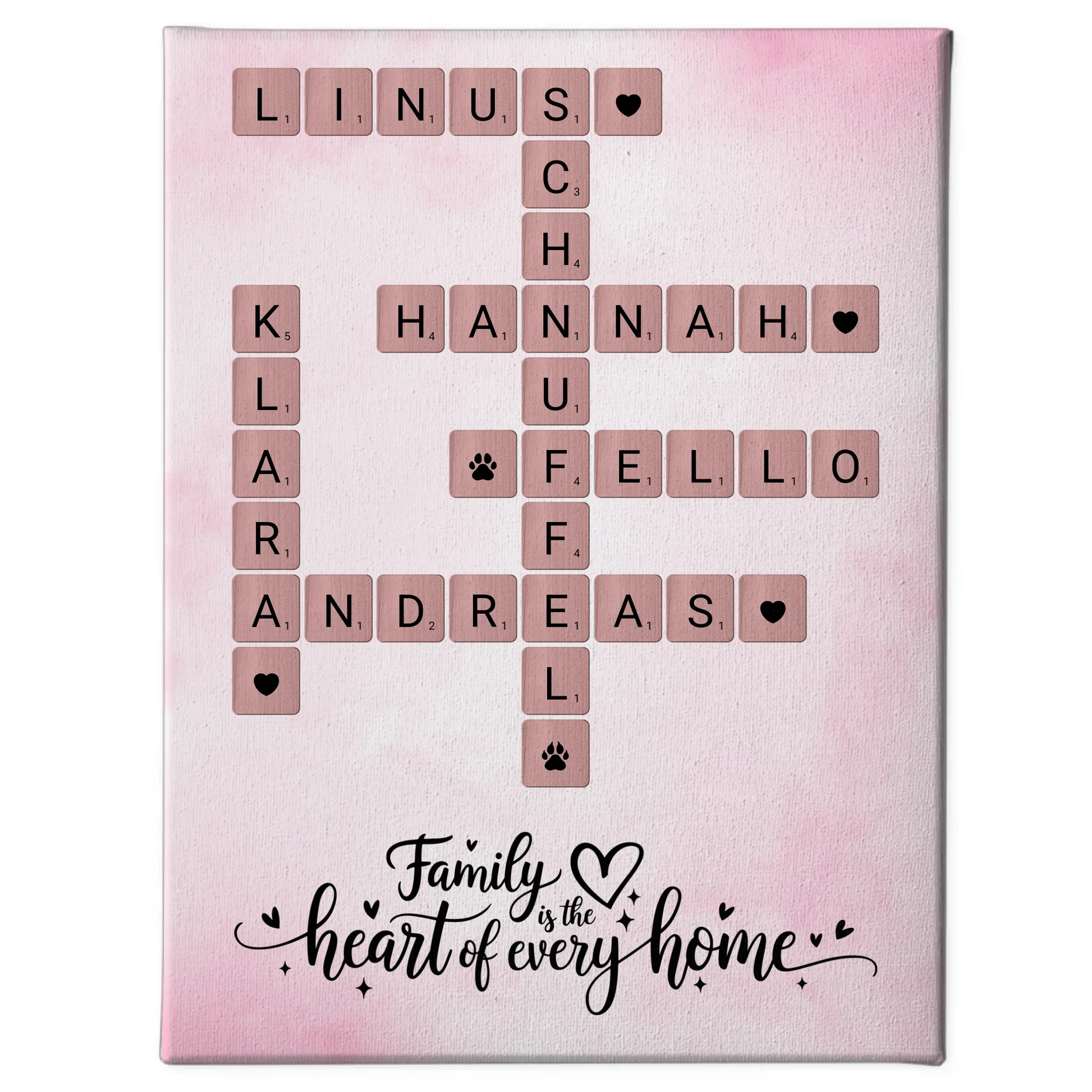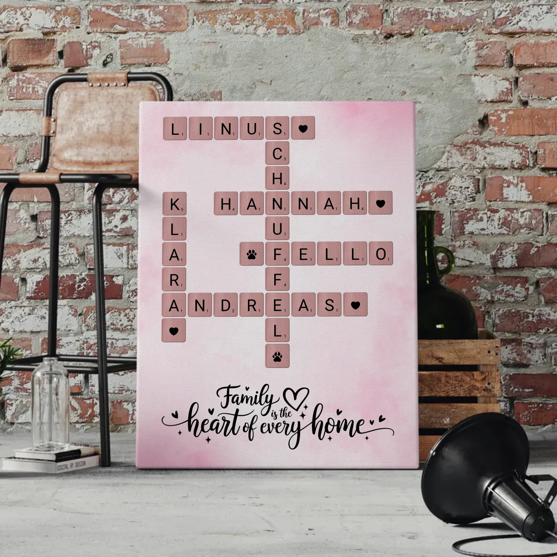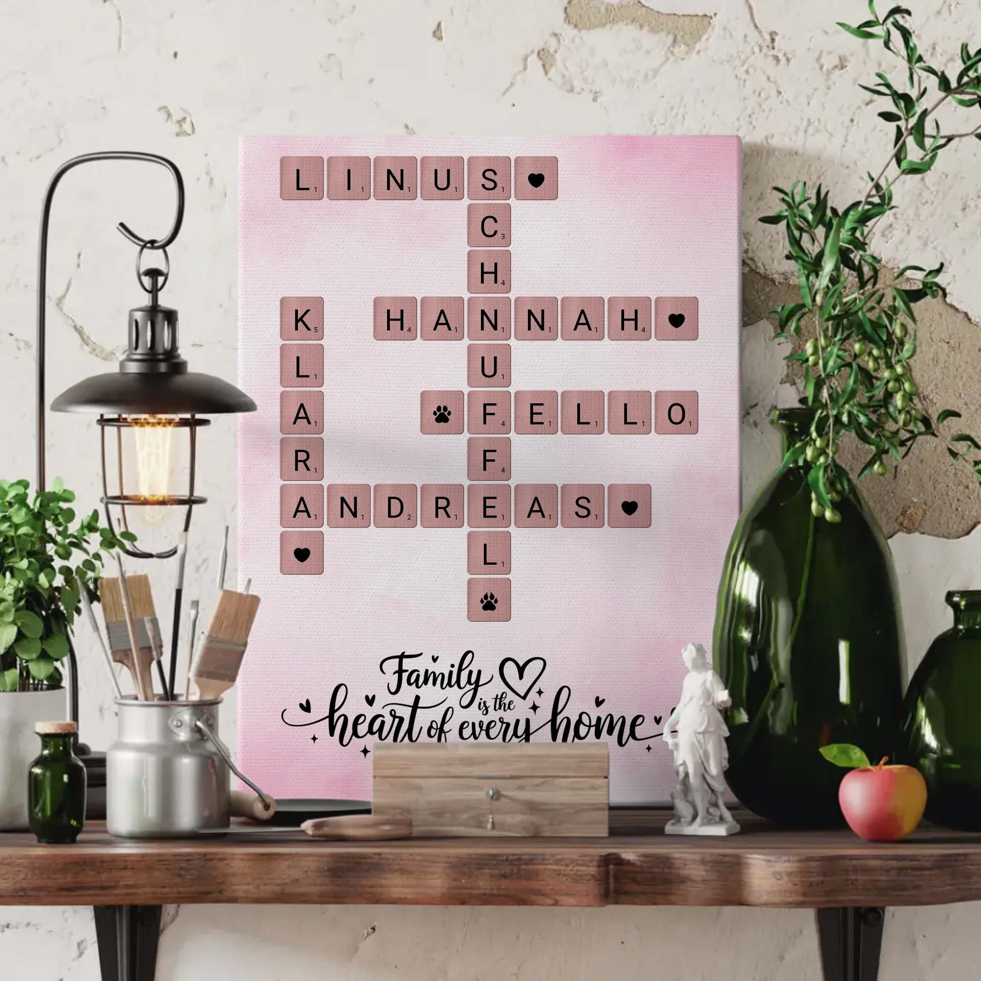 Personalisierte Fotoleinwand Familie Kreuzworträtsel Wunschtext