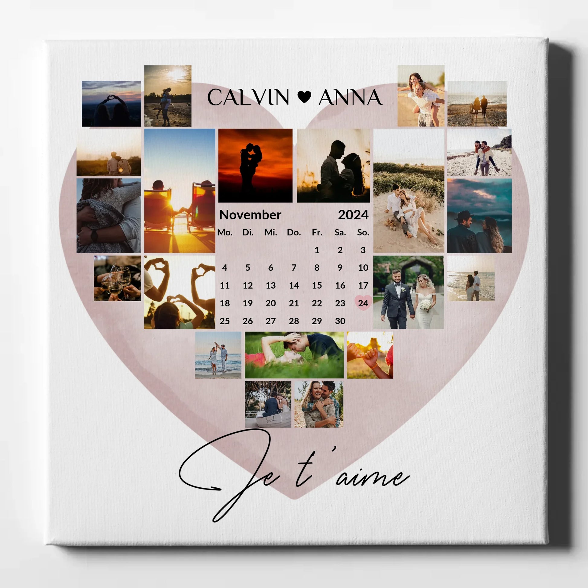 Personalisierte Fotoleinwand Fotocollage Je T Aime Kunstwerk