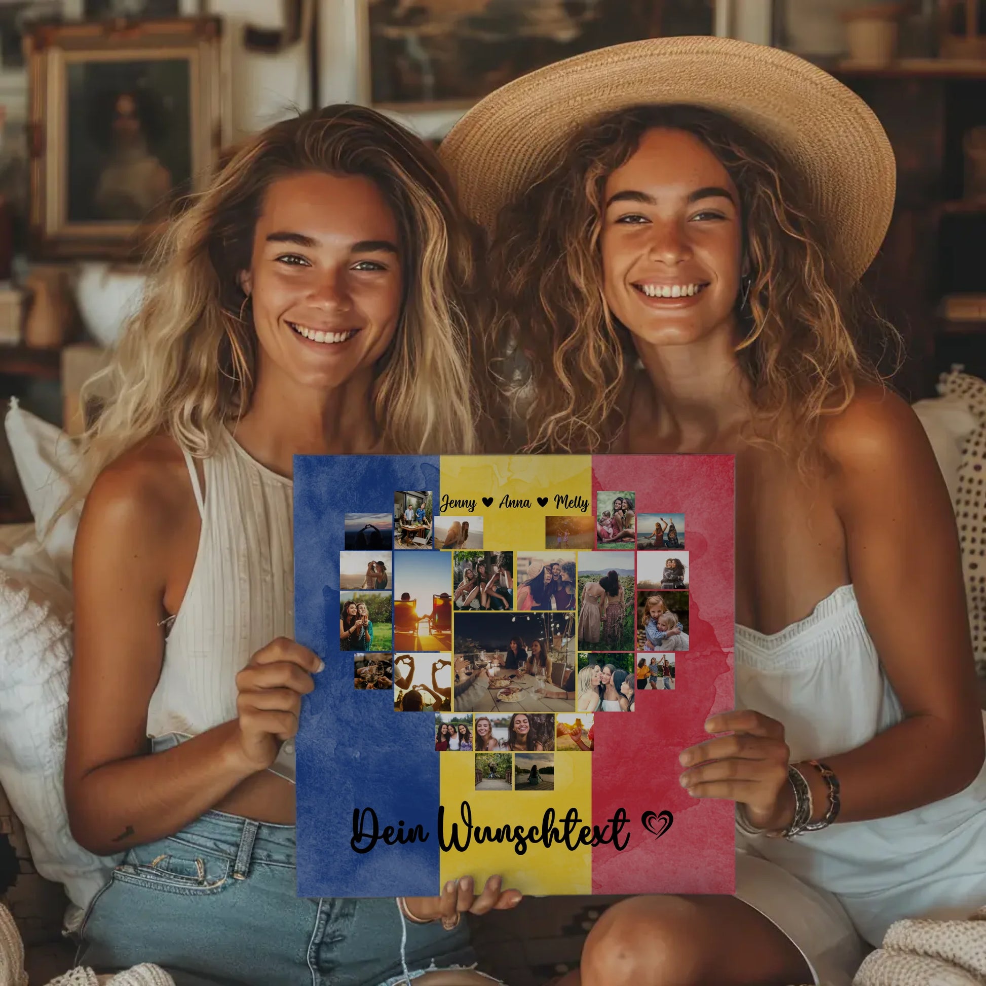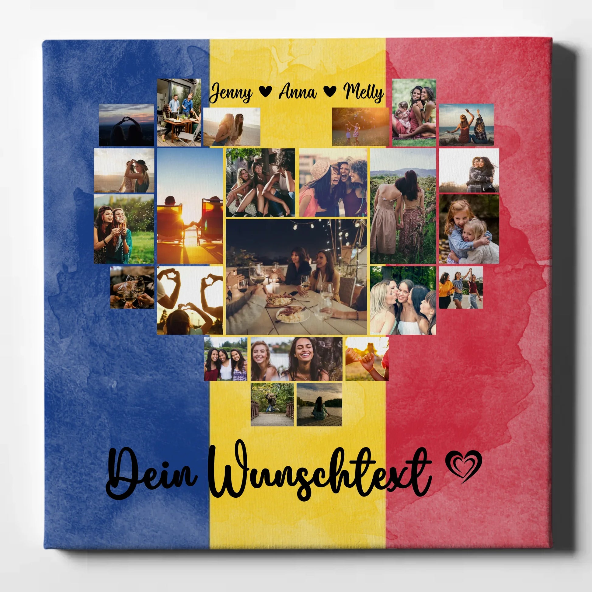 Erlebe unvergessliche Momente mit unserer einzigartigen personalisierte Fotoleinwand für Paare, Urlaub Rumänien. Diese besondere Leinwand bietet dir die Möglichkeit, die schönsten Erinnerungen an euren gemeinsamen Urlaub in Rumänien festzuhalten. Gestalte eure individuelle Fotocollage mit über 20+ Fotos aus euren Reiseabenteuern und verleihe deiner Leinwand eine ganz persönliche Note.