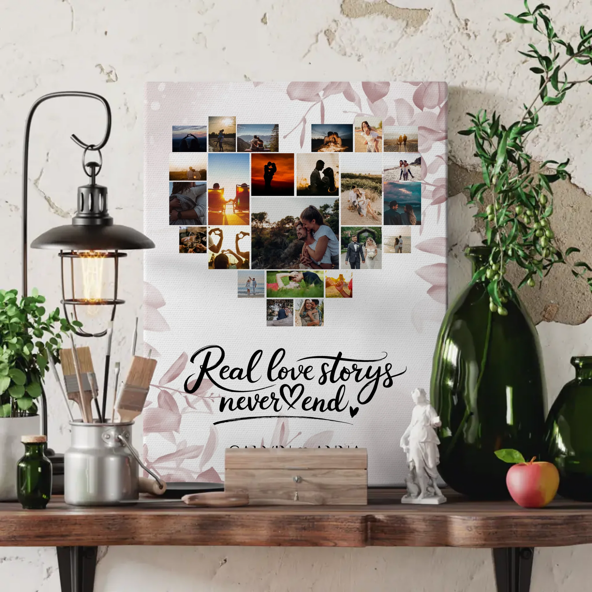 Personalisierte Fotoleinwand Liebe Fotocollage Real Love Storys never end