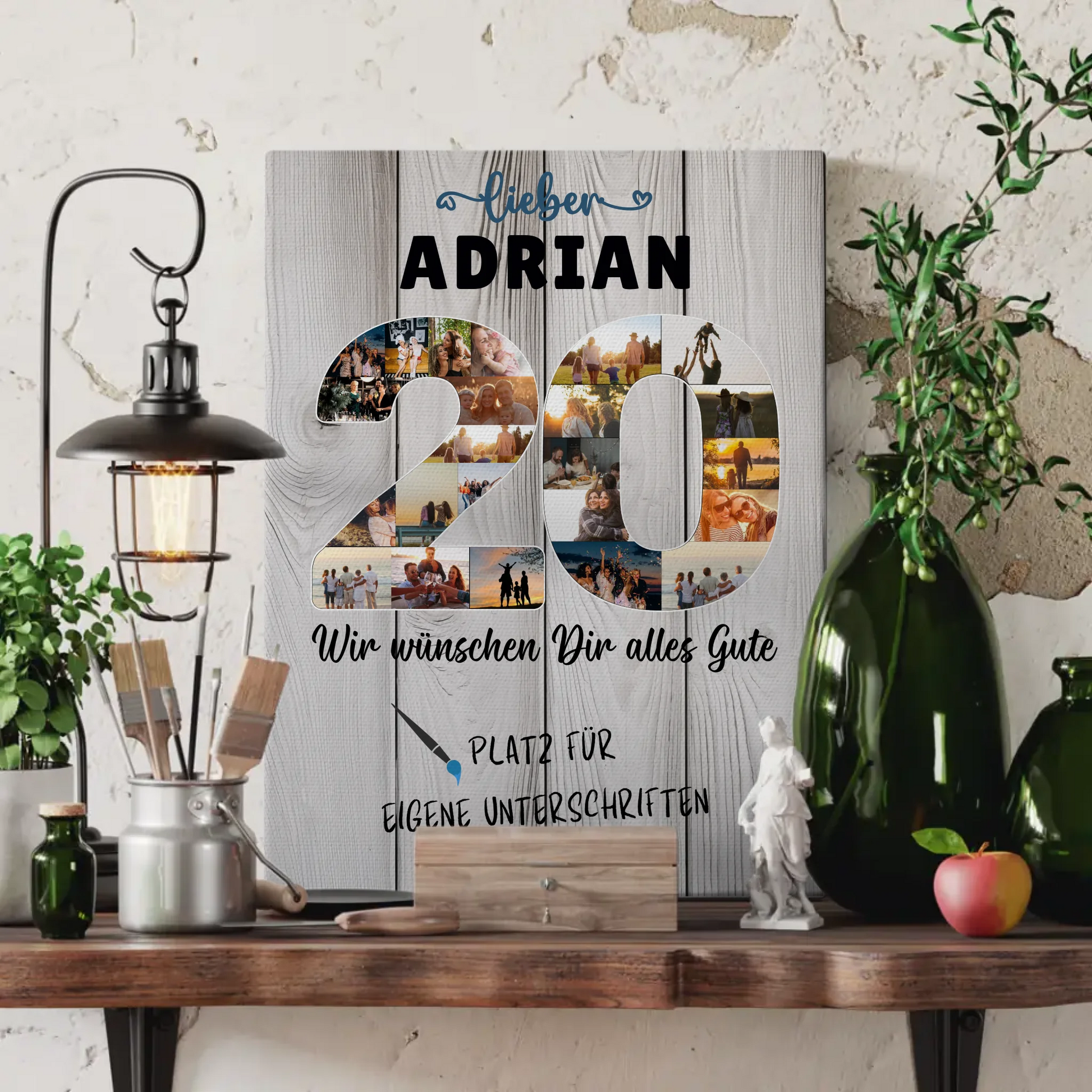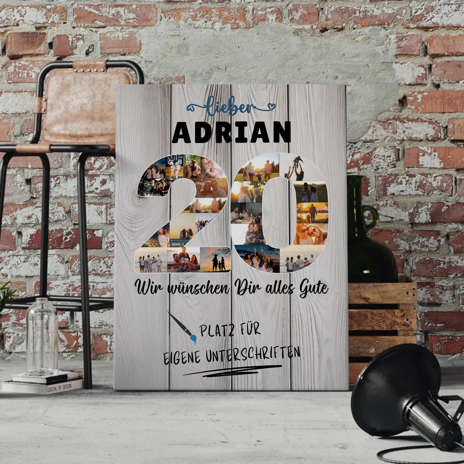 Personalisierte Fotoleinwand mit Unterschriften zum 20. Geburtstag für Deinen Sohn oder Bruder