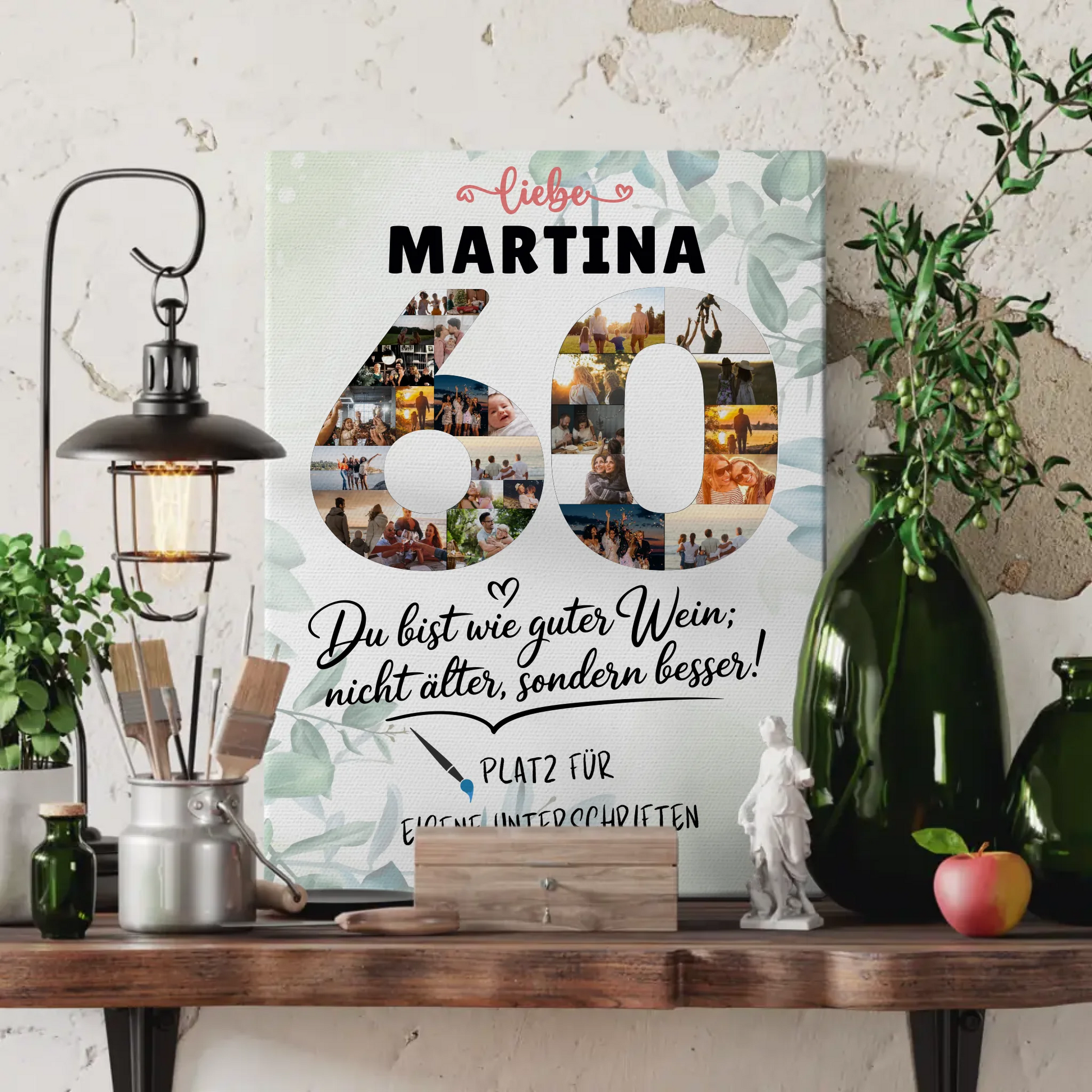 Personalisierte Fotoleinwand mit Unterschriften 60 Geburtstag Fotos Wunsch Name