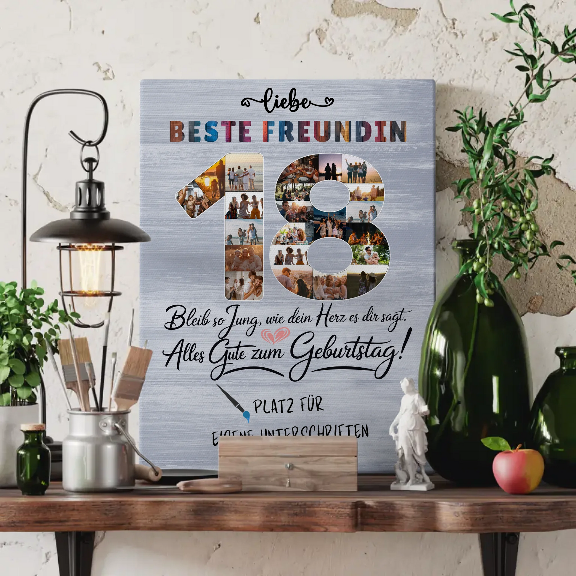 Personalisierte Fotoleinwand mit Unterschriften Beste Freundin 18 Geburtstag Fotos