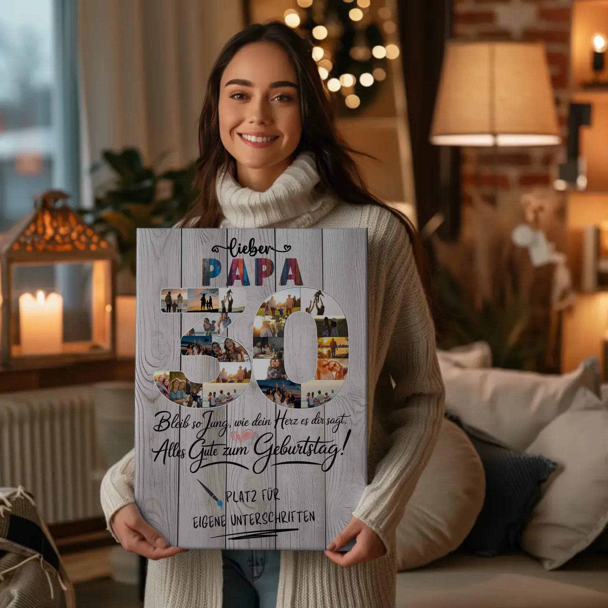 Personalisierte Fotoleinwand mit Unterschriften Papa 30 Geburtstag