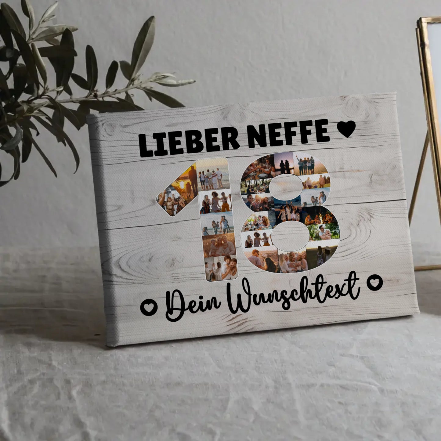 Personalisierte Fotoleinwand mit Wunschtext 18 Geburtstag Neffe
