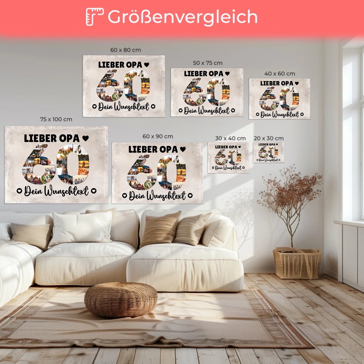 Personalisierte Fotoleinwand mit Wunschtext zum 60. Geburtstag für Opa