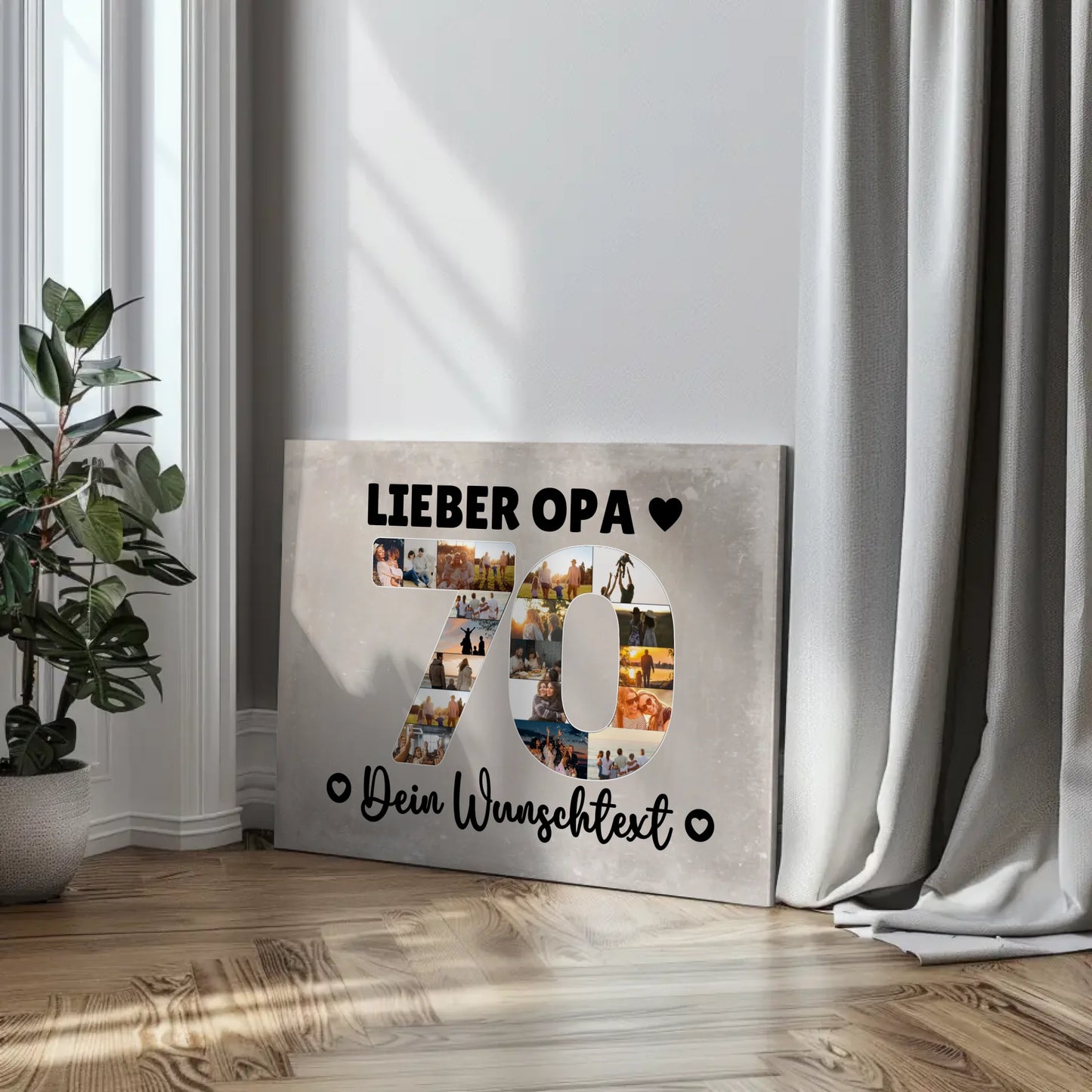 Personalisierte Fotoleinwand mit Wunschtext 70 Geburtstag Opa