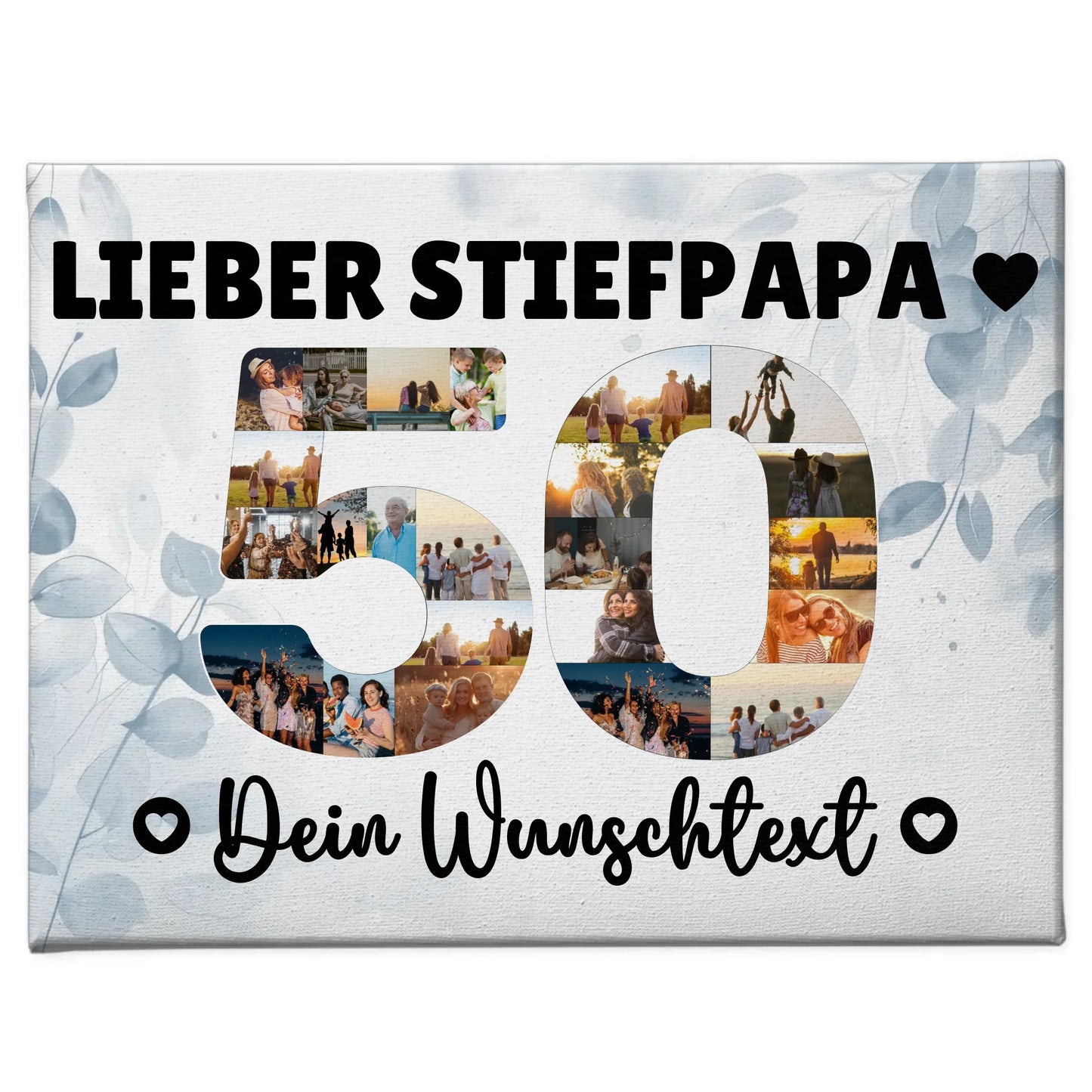 Personalisierte Fotoleinwand mit Wunschtext für Stiefpapa 50 Geburtstag