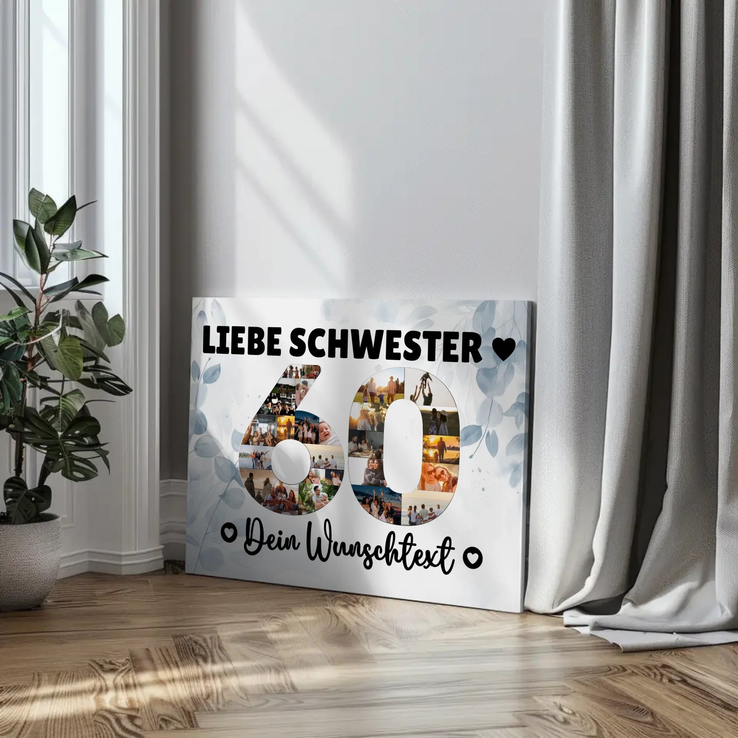 Personalisierte Fotoleinwand mit Wunschtext zum 60. Geburtstag deiner Schwester