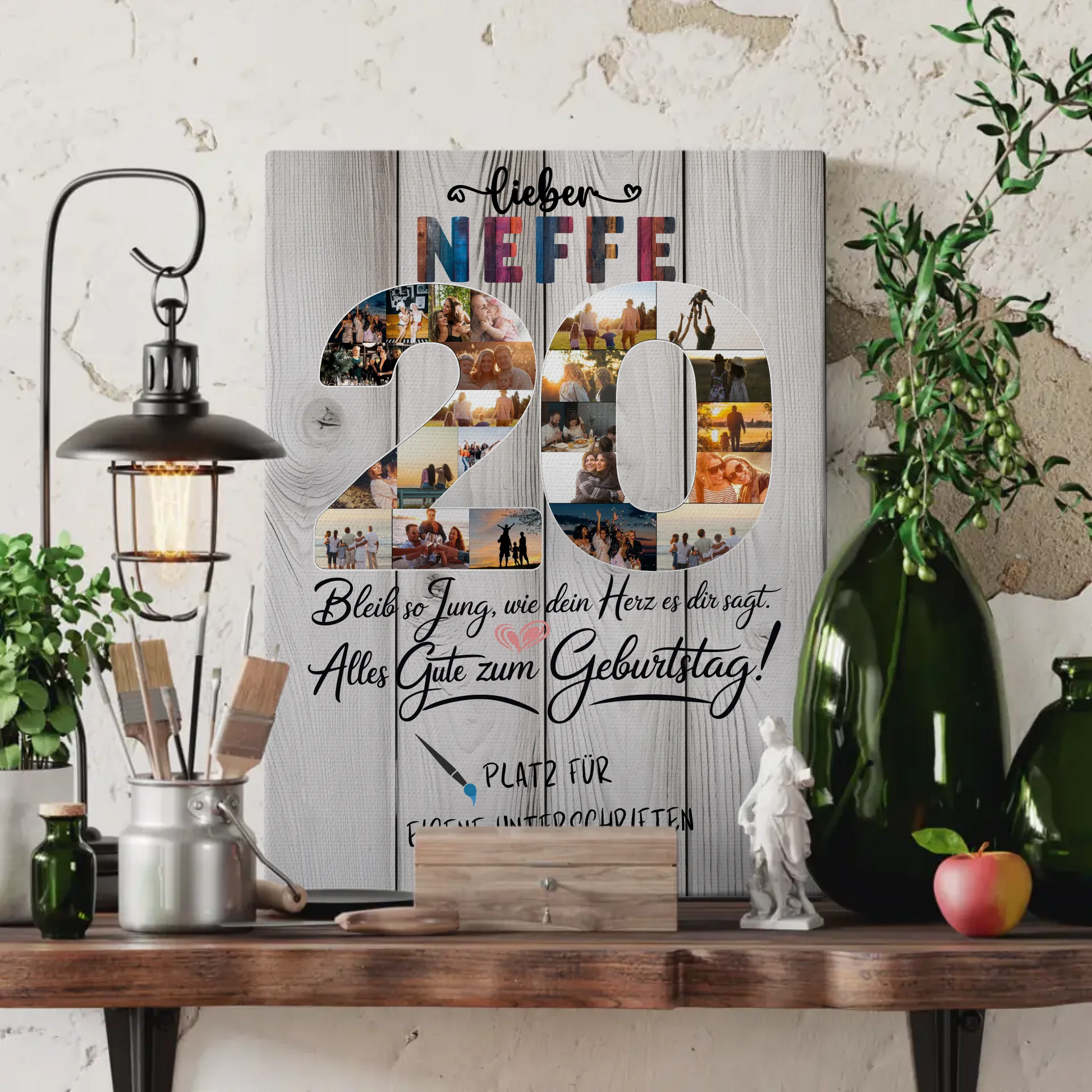 Personalisierte Fotoleinwand Neffe zum 20. Geburtstag mit Unterschriften