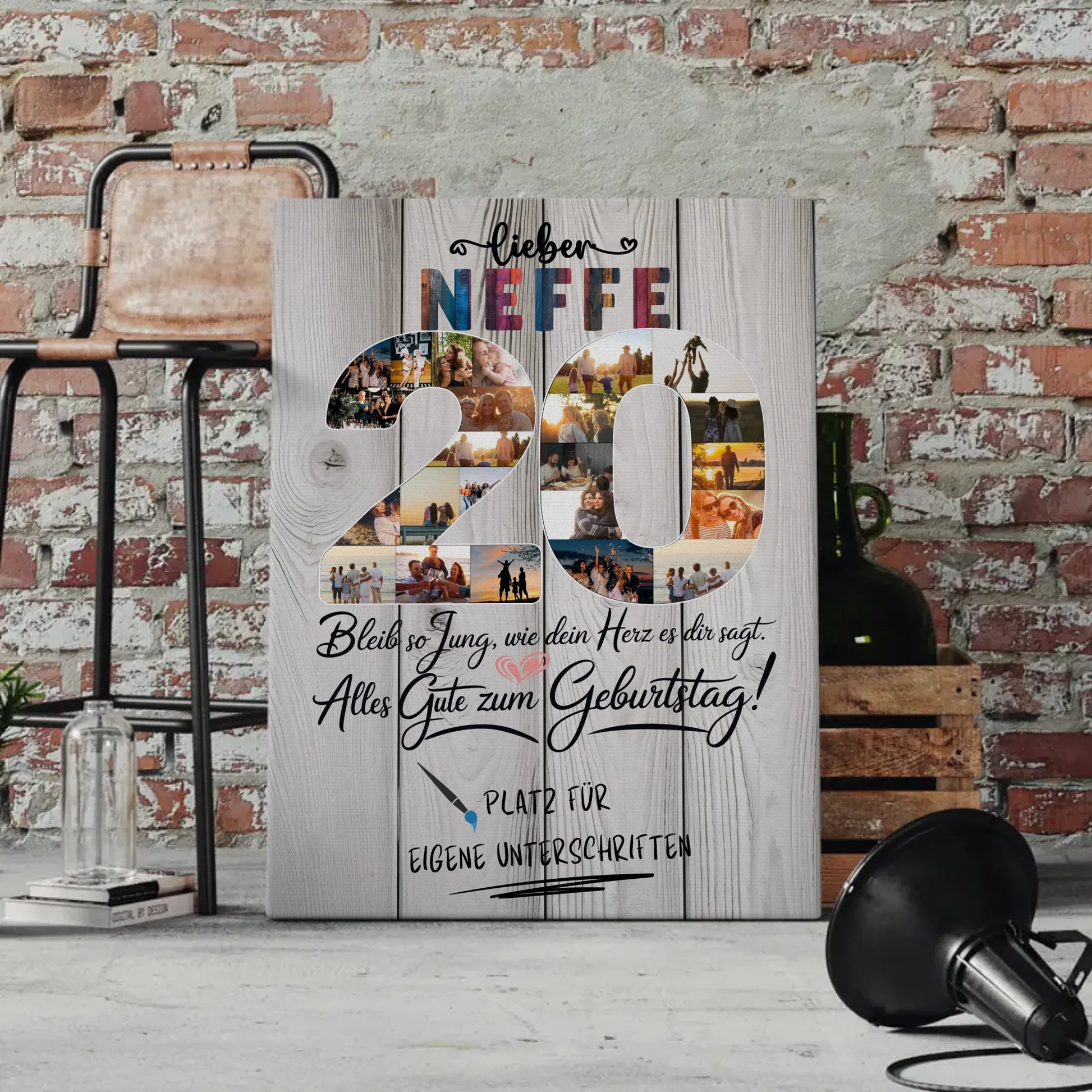Personalisierte Fotoleinwand Neffe zum 20 Geburtstag mit Unterschriften
