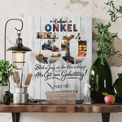Kreiere jetzt deine persönliche Fotoleinwand und mache den Tag deines Onkels unvergesslich! Bestelle noch heute und überrasche ihn mit diesem einmaligen Kunstwerk!