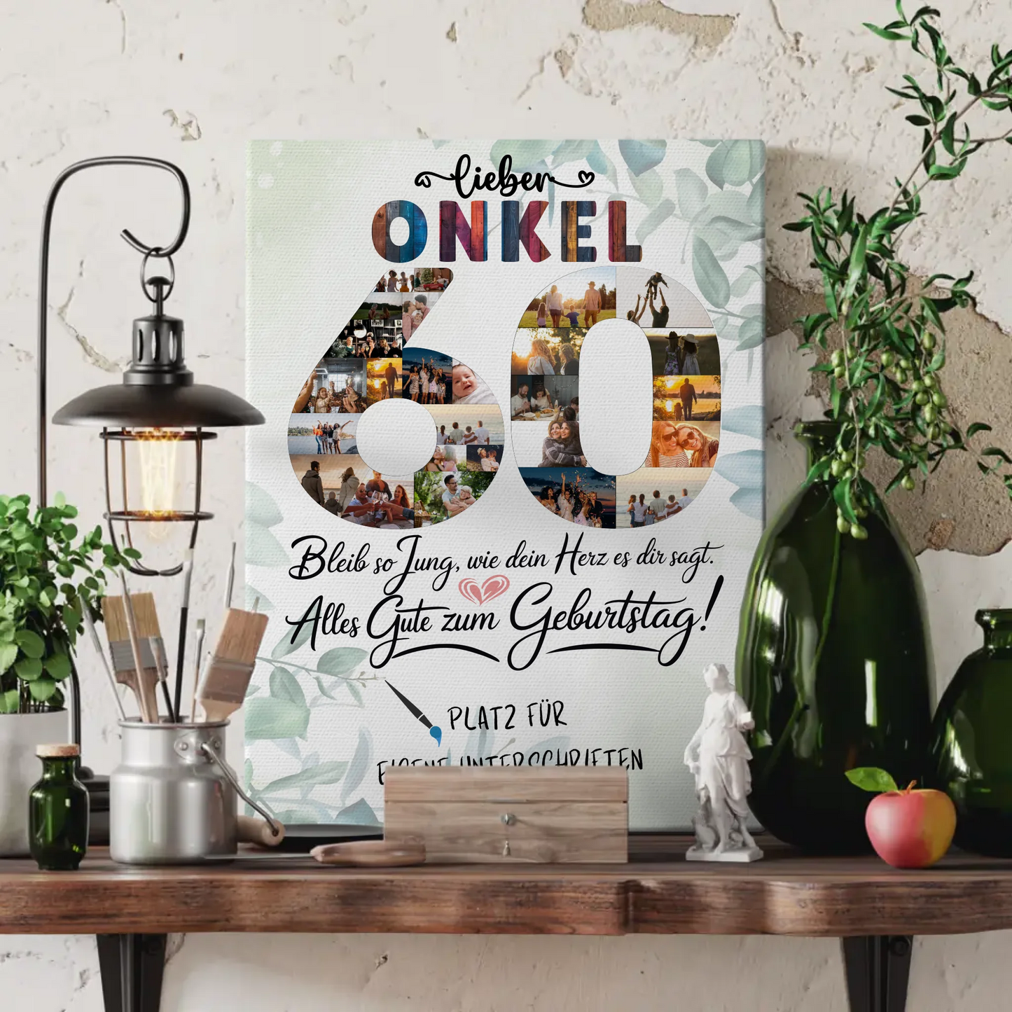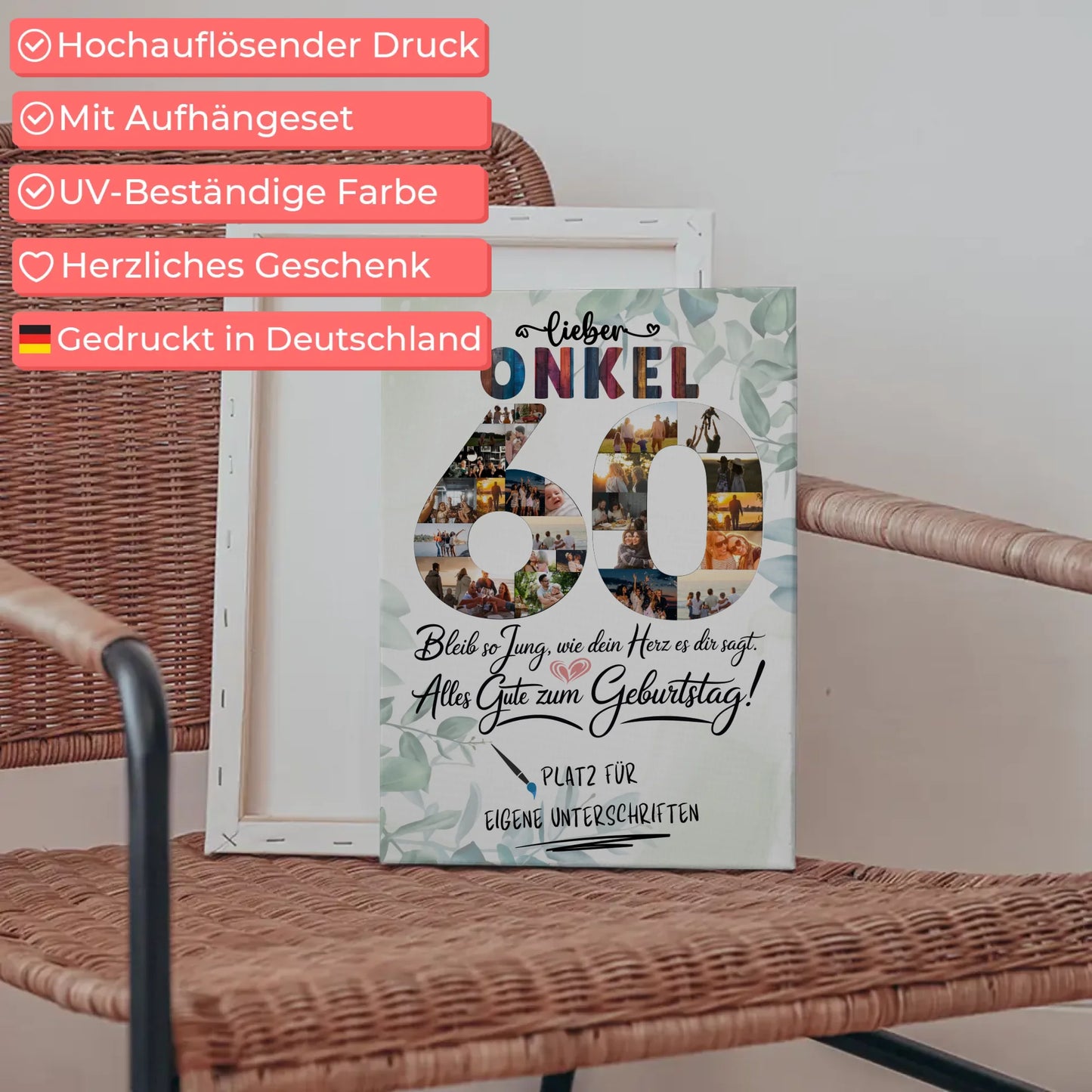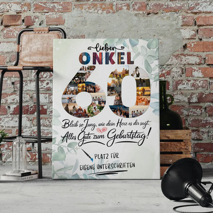Personalisierte Fotoleinwand Onkel 60 Geburtstag mit Unterschriften
