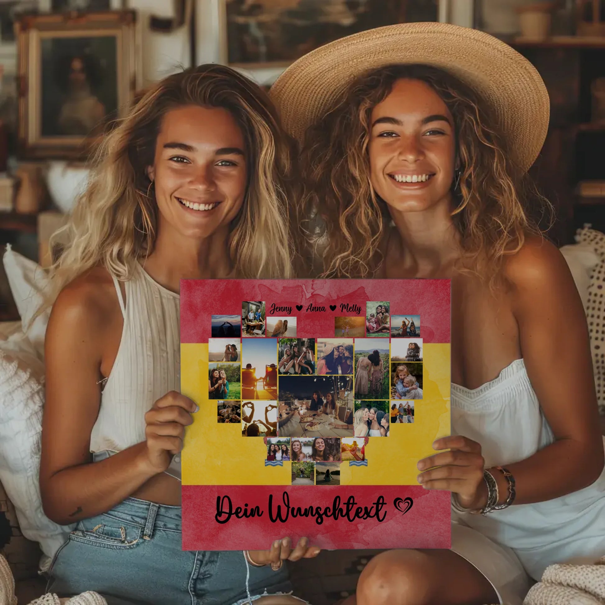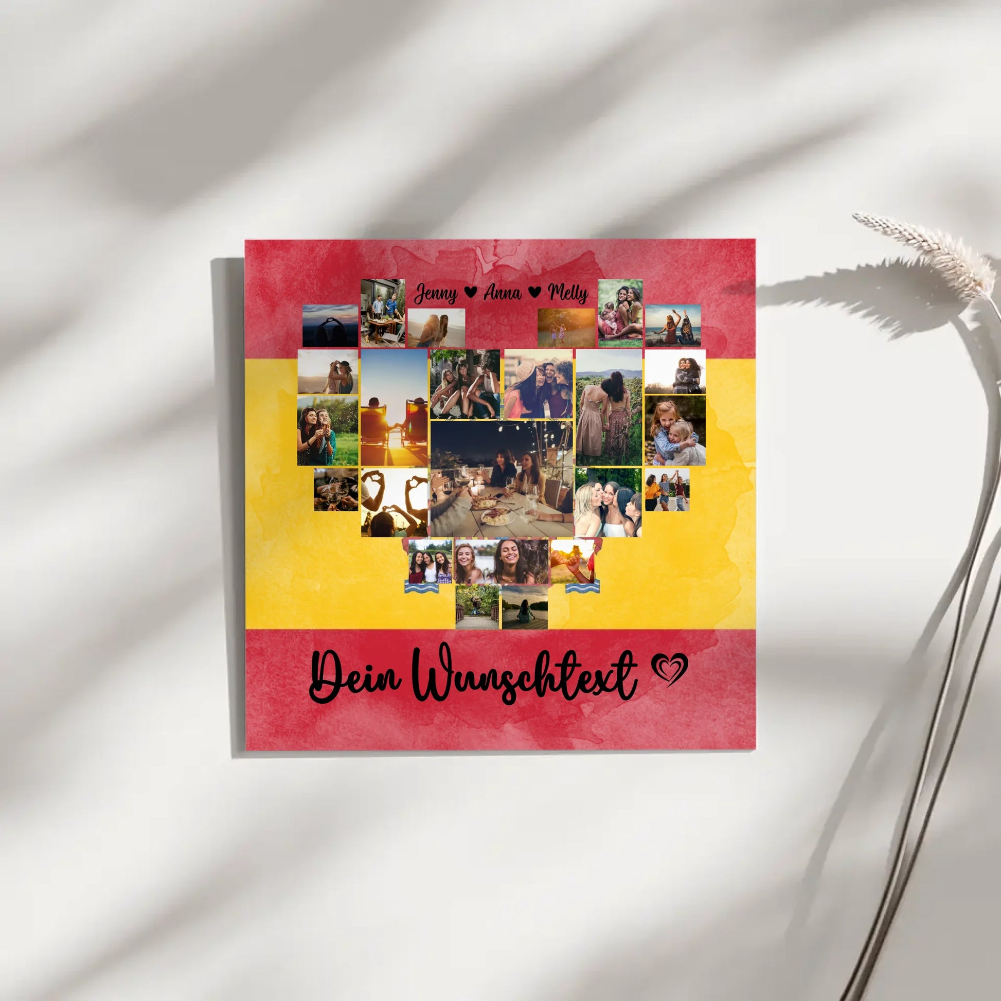 Gestalte deine persönliche Leinwand mit über 20+ Fotos, füge die Namen der Liebsten hinzu, wähle ein passendes Hintergrundbild aus und formuliere deinen eigenen Spruch oder Wunschtext. So entstehen ganz besondere Urlaubserinnerungen, die ihr immer wieder in eurem Zuhause genießen könnt.