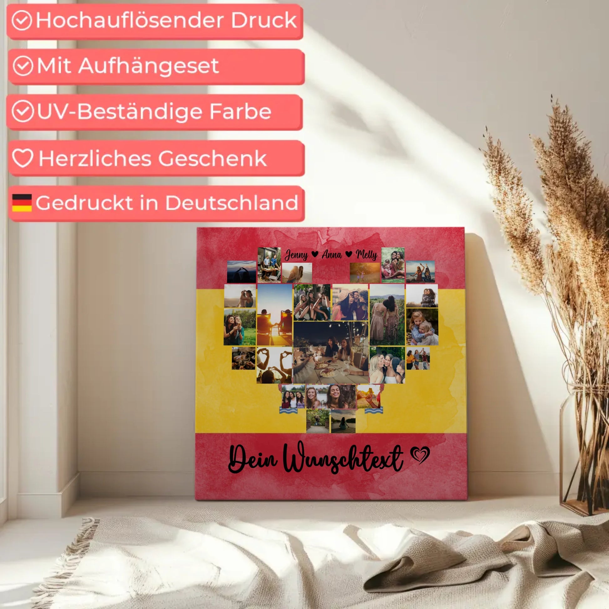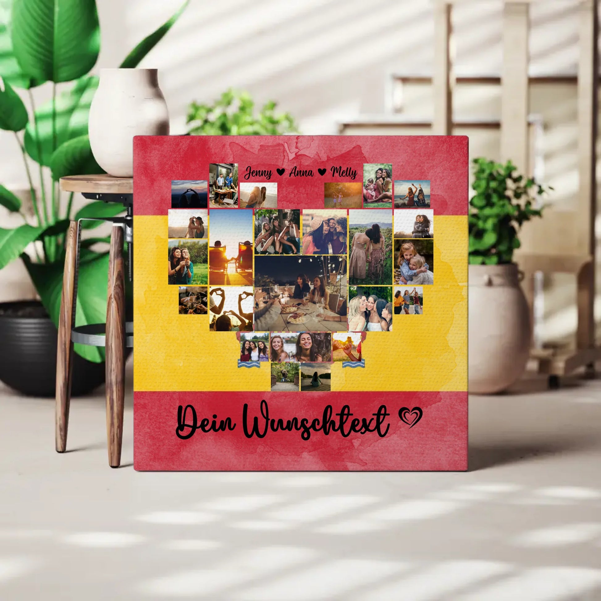 Mach deine Erinnerungen an den letzten Urlaub in Spanien unvergesslich mit unserer personalisierte Fotoleinwand Paare. Diese individuelle Leinwand ist das perfekte Geschenk für besondere Anlässe wie den Valentinstag und ermöglicht es dir, einzigartige Momente in einer kunstvollen Fotocollage festzuhalten.