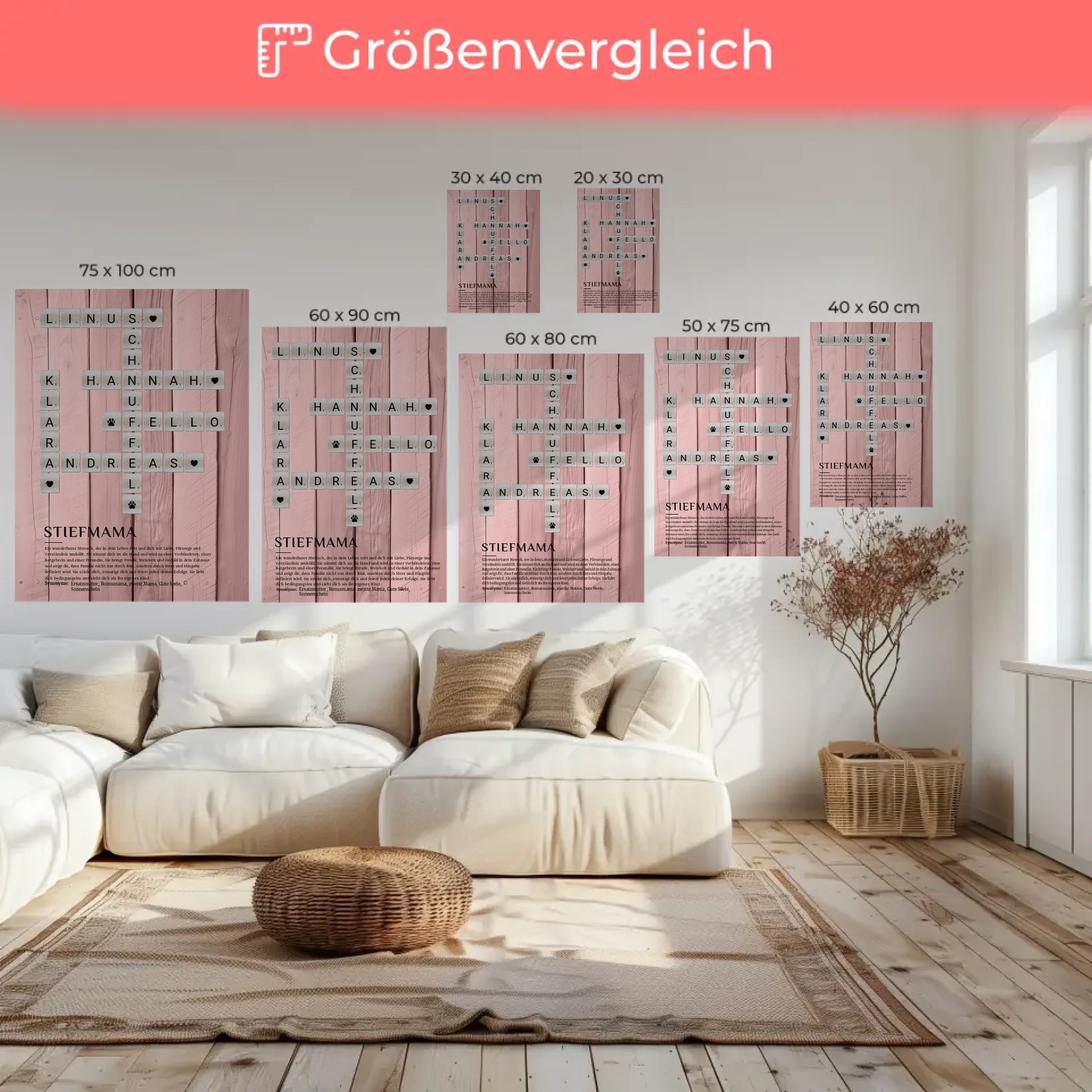 Personalisierte Fotoleinwand Stiefmama Kreuzworträtsel Kunst