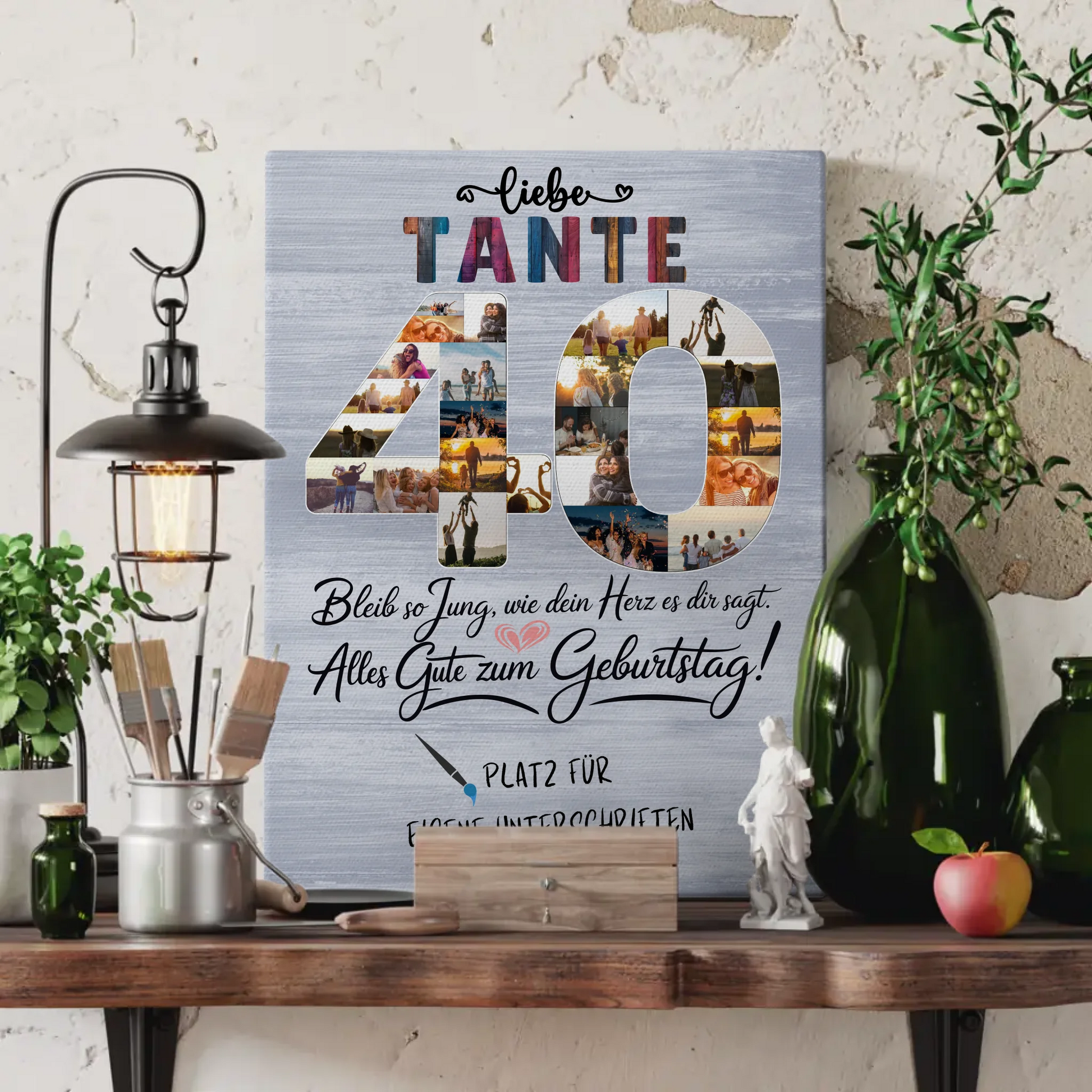 Personalisierte Fotoleinwand Tante 40 Geburtstag mit Unterschriften