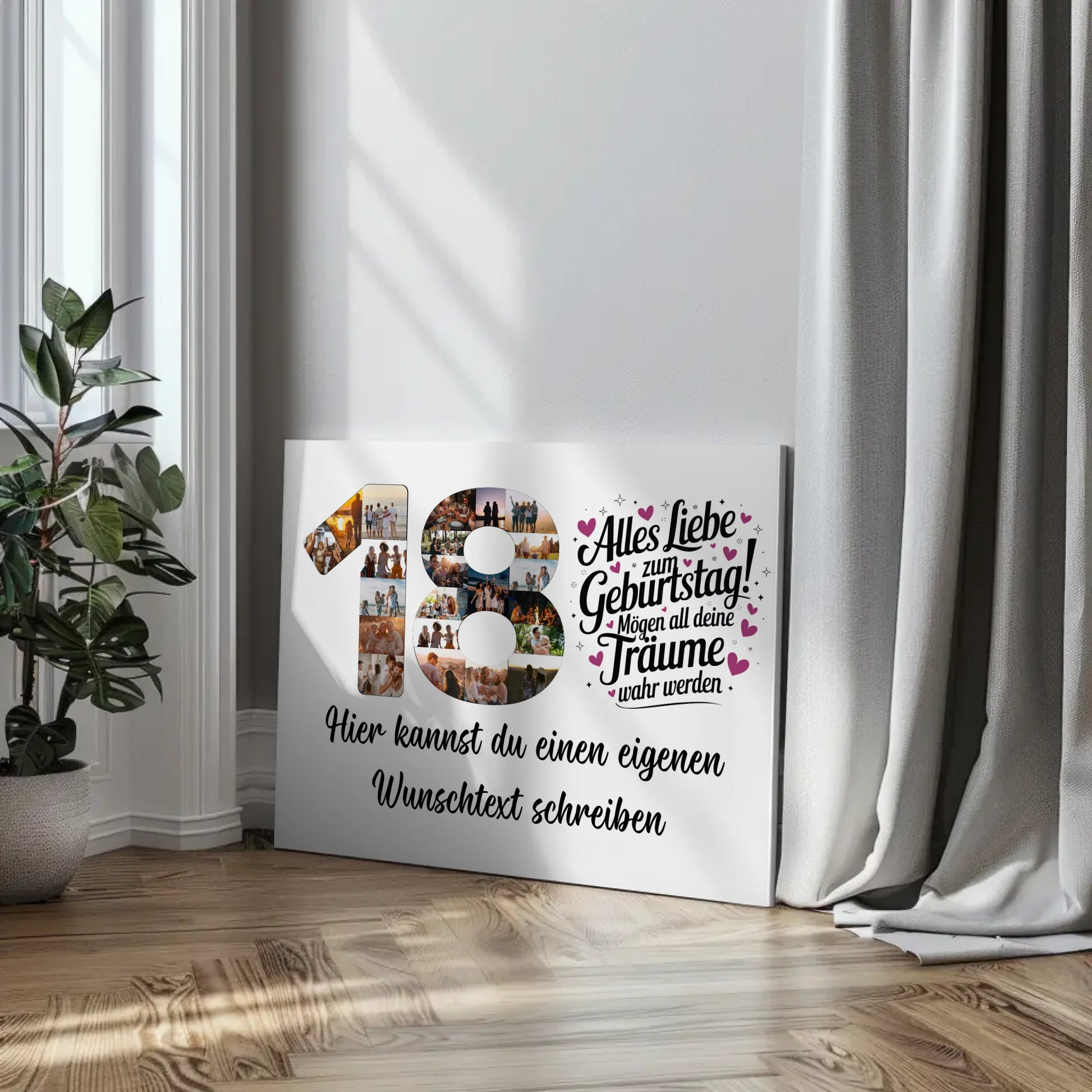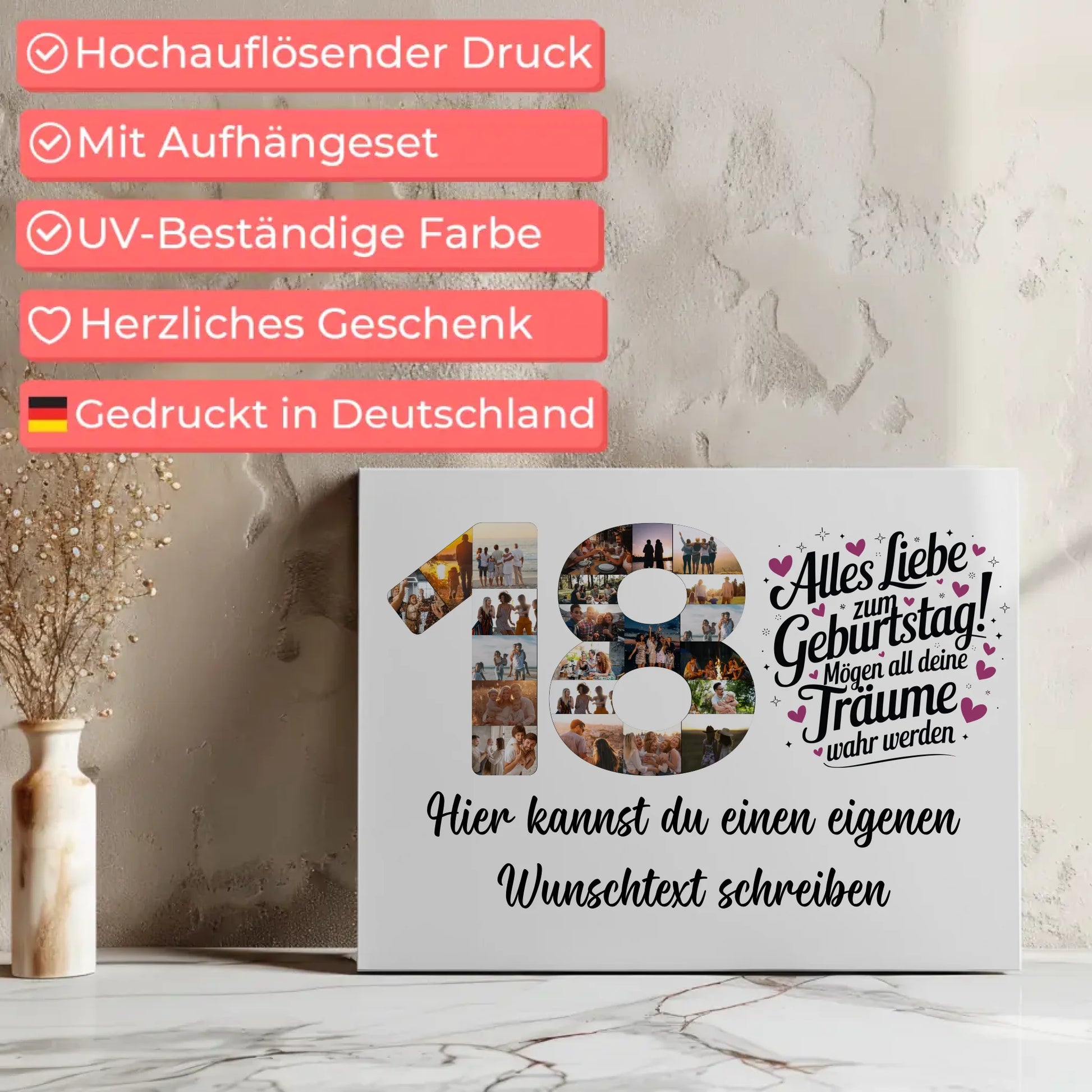 Personalisierte Fotoleinwand Wunschtext 18 Geburtstag Deine Träume