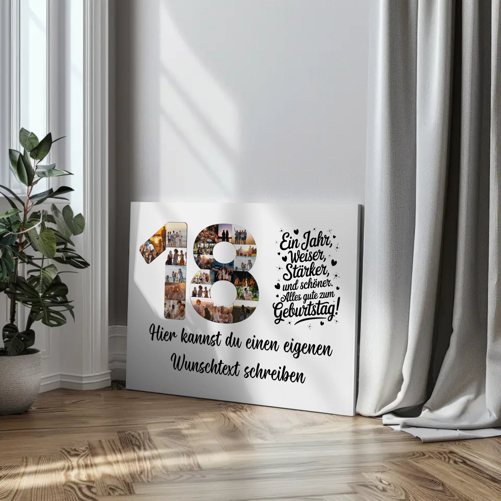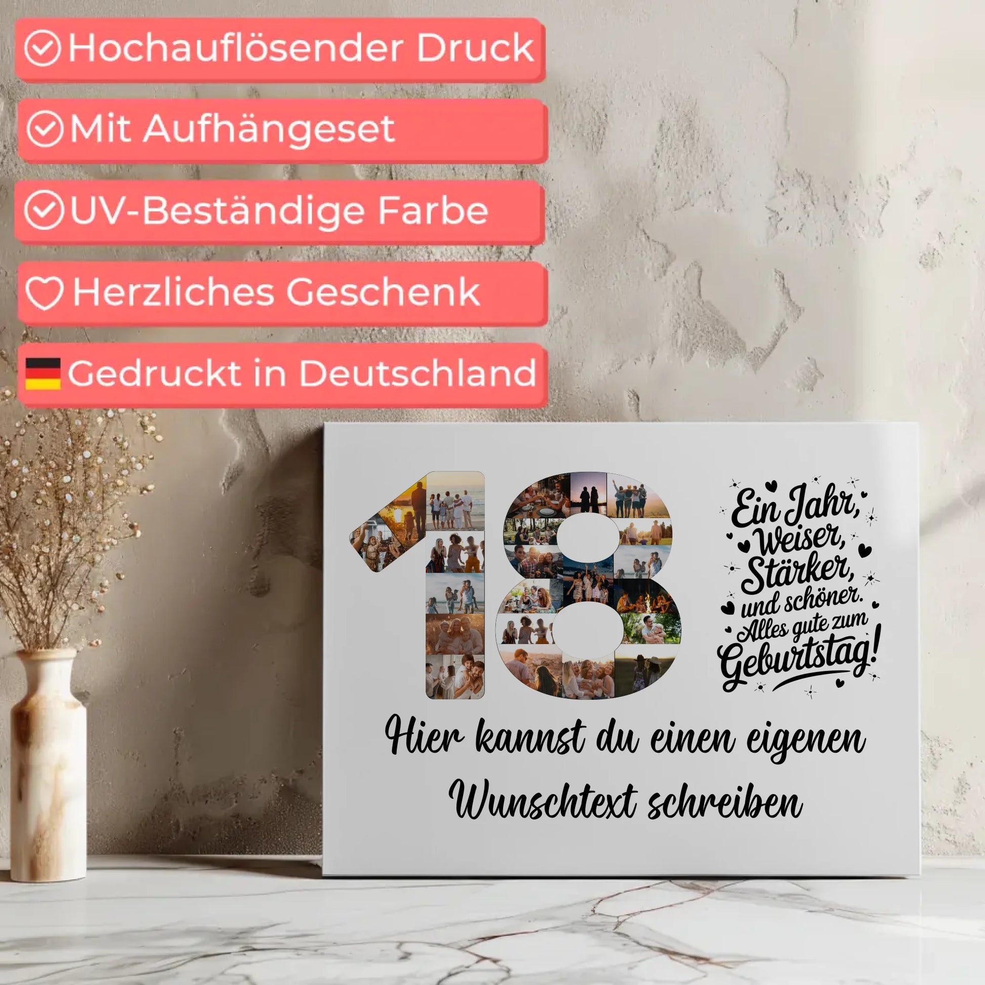 Personalisierte Fotoleinwand Wunschtext 18 Geburtstag Weiser Stärker