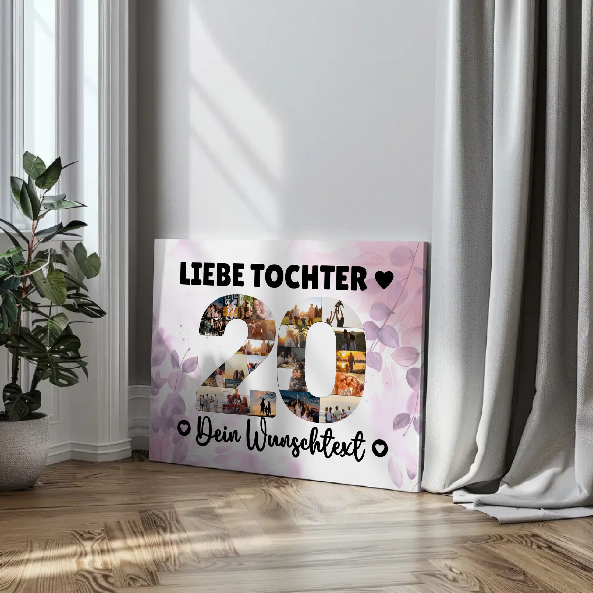 Personalisierte Fotoleinwand für den 20. Geburtstag deiner Tochter