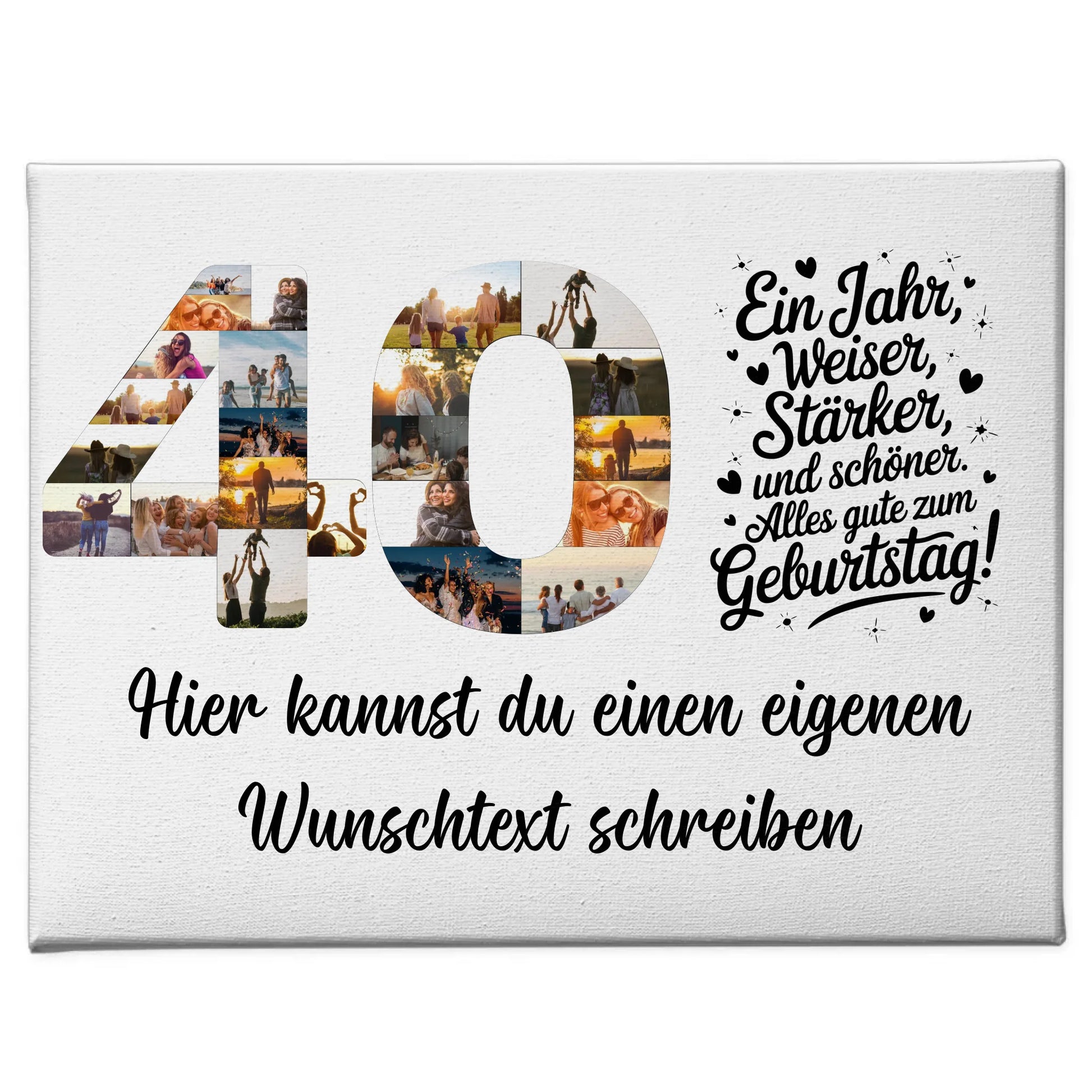 Personalisierte Fotoleinwand Wunschtext 40 Geburtstag Weiser Staerker